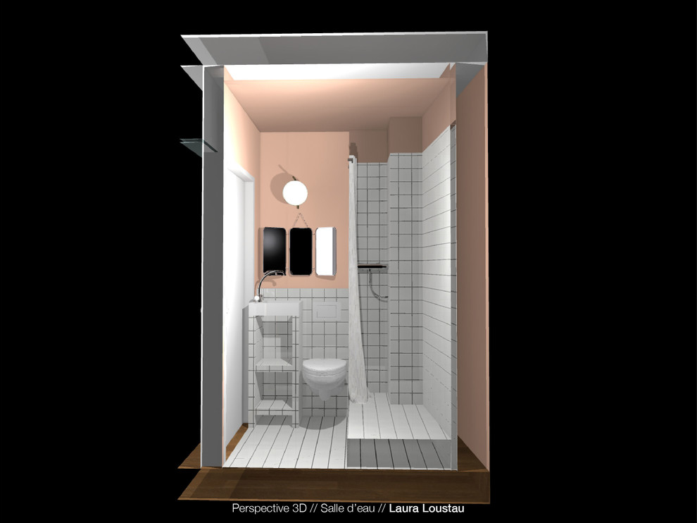 « Quand le propriétaire à formulé cette idée, je tenais à m’assurer qu’il se rendait bien compte du petit espace que cela créerait, les éléments de la salle de bains seraient forcément en dessous des tailles standards. Je suis donc venue avec une craie et j’ai tracé ce que ça donnerait en termes de volumes et nous avons finalement validé son choix », poursuit l’architecte d’intérieur.