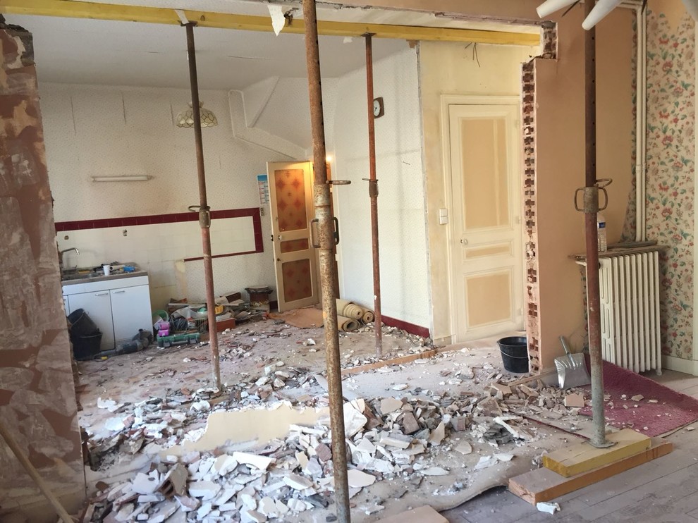 Avant. Les cloisons qui séparaient l’ancienne cuisine du couloir et du salon ont été abattues afin de créer une vaste pièce à vivre d’une superficie totale de 48 m².