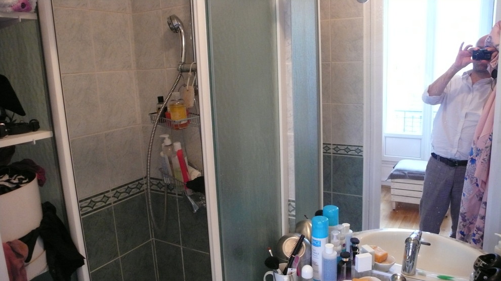 AVANT : On accède à la salle de bains depuis la pièce de vie. Ce n’est pas une situation optimale, mais son emplacement ne pouvait être modifié dans cet appartement.