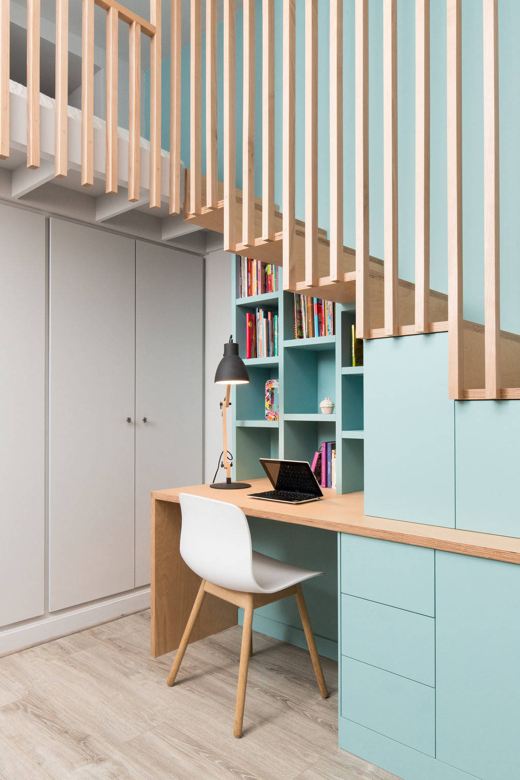 Le propriétaire souhaite optimiser l’espace restreint en créant pour son fils un espace nuit, un bureau, un coin pour jouer aux jeux vidéo et quelques rangements. Comme tout le reste de l’appartement a été rénové dans les teintes bleues (par référence au blues que le papa aime jouer), il voudrait retrouver dans la chambre de son fils cet esprit fun et bleu.