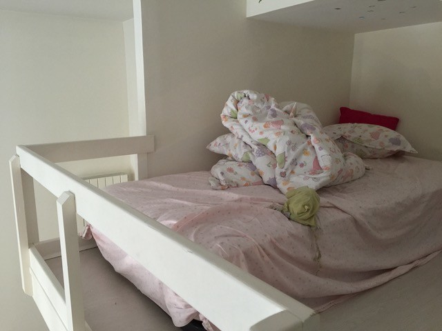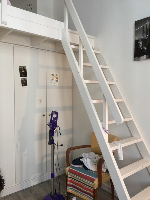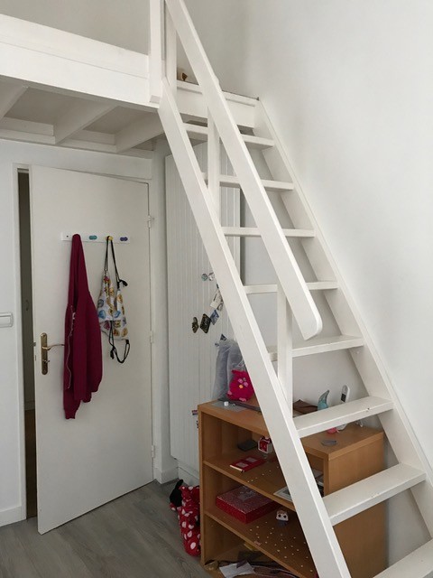 La chambre dispose de volumes généreux, (près de 14 m² et 3,40 m sous plafond) et elle est en bon état mais ses parents appellent une professionnelle à la rescousse car leur fille aînée n’arrive pas à s’approprier les lieux… Angoissée à l’idée de dormir dans cette mezzanine avec échelle perchée à 2,30 m de haut, la jeune fille préfère aller dormir le soir dans la chambre de sa petite sœur.