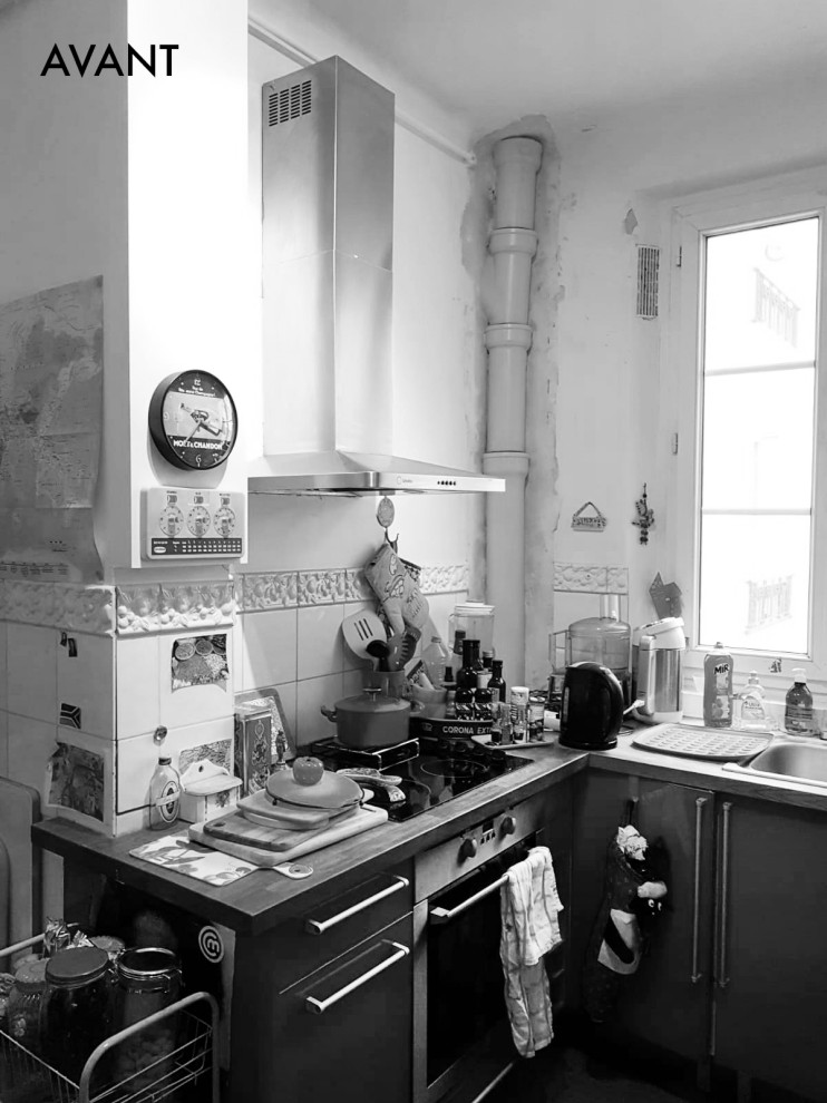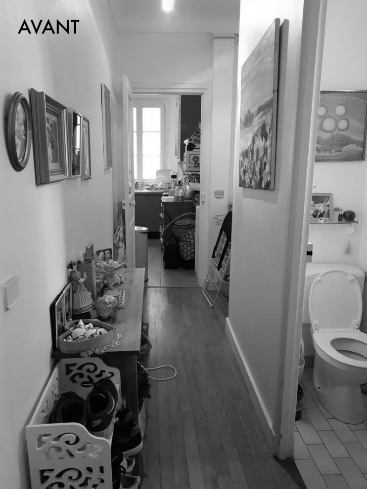 Avant. Dans cet appartement qui était resté dans son jus, il y avait beaucoup d’espace perdu, notamment un long couloir et une entrée autrefois très encombrée.