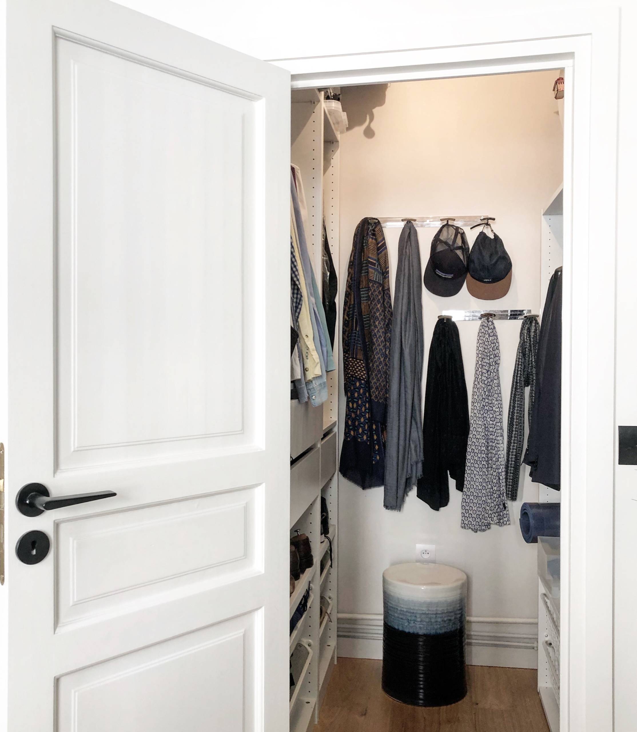 Après. L’architecte l’a transformé en dressing pour les vêtements et les chaussures, équipé d’une tringle et d’étagères. La partie haute, inaccessible a servi à placer le ballon d’eau chaude : « Un extra-plat de 80 L était très suffisant pour un couple mais mon client a préféré partir sur un 100 L pour recevoir confortablement à l’occasion. »