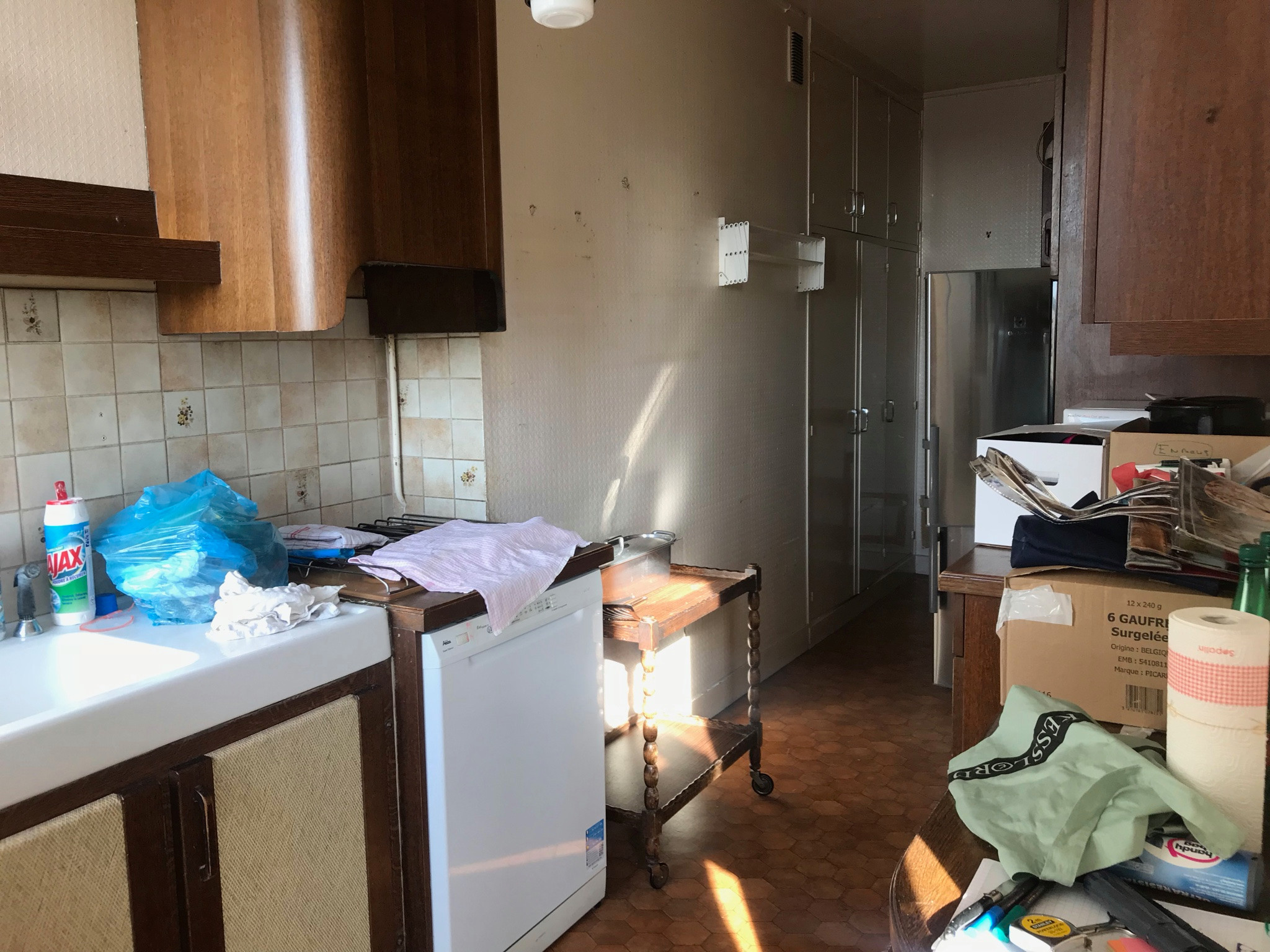 Avant. L’ancienne cuisine, étroite et tout en longueur, est désormais ouverte sur l’espace salon.
