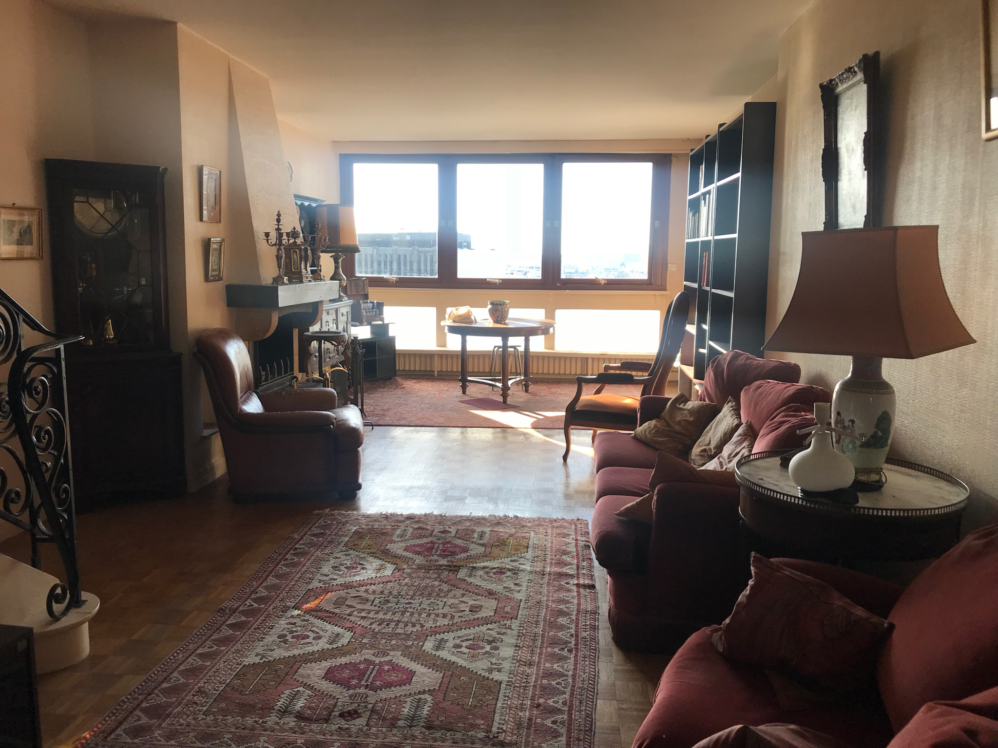Avant. L’imposante cheminée au look rustique a été déposée pour gagner de la place dans l’espace salon. Auparavant, cette pièce à vivre toute en longueur ne permettait pas de définir clairement la zone salon pour créer un espace convivial et accueillant.