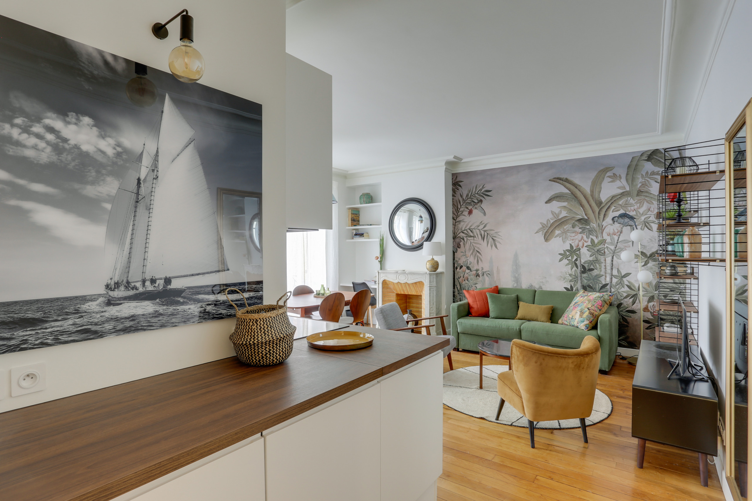 Des touches vintage, de la couleur, des espaces repensés et fonctionnels… Cet appartement de 46 m² conjugue les atouts