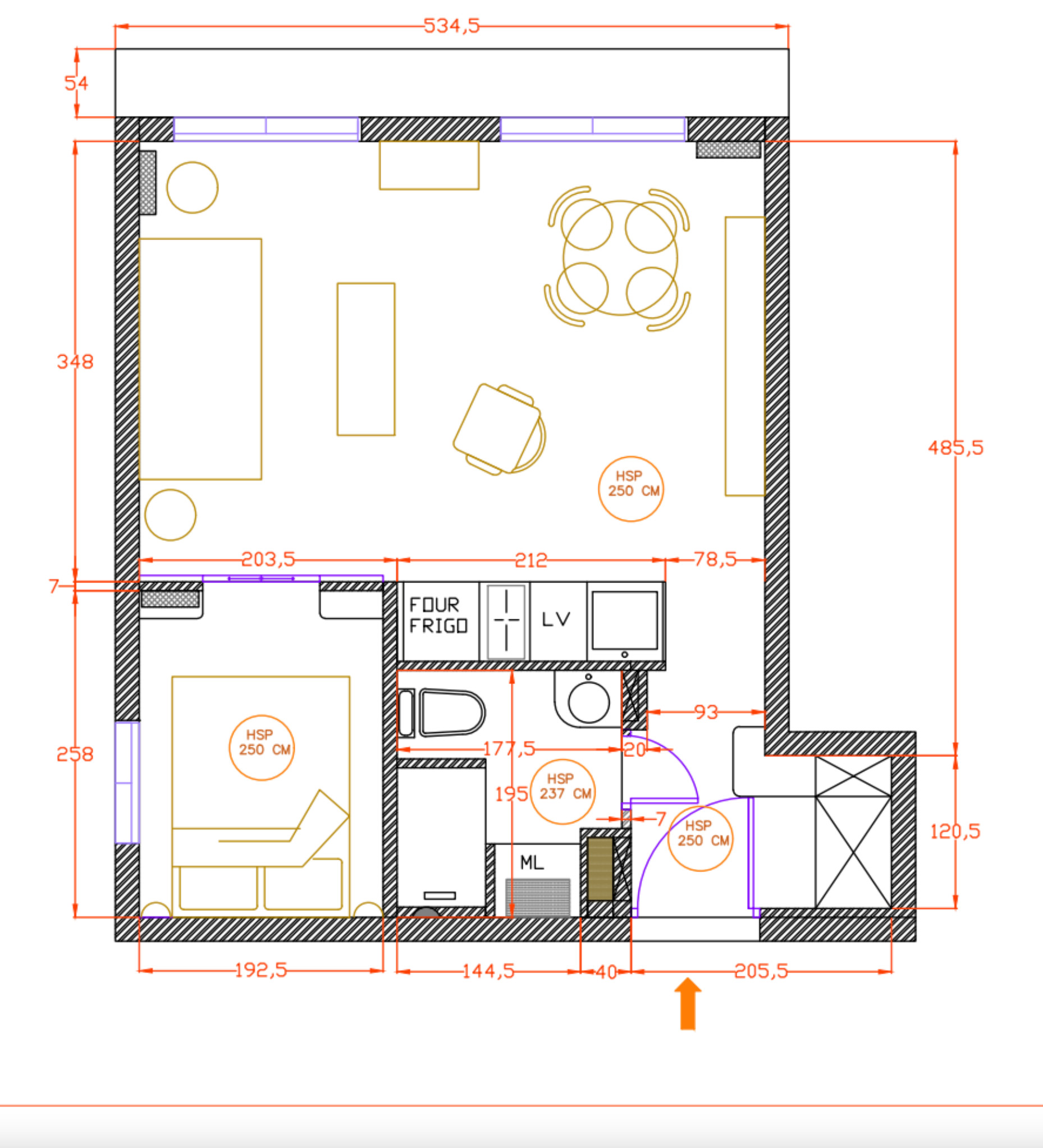 Après. Aurore a trouvé cette idée de refonte spatiale judicieuse et l’a validée à l’aide de plans et de vues 3D : la cuisine fermée d’origine a été repensée en coin nuit intimiste et une petite cuisine d’appoint réintégrée astucieusement dans l’espace séjour sans perte d’espace.