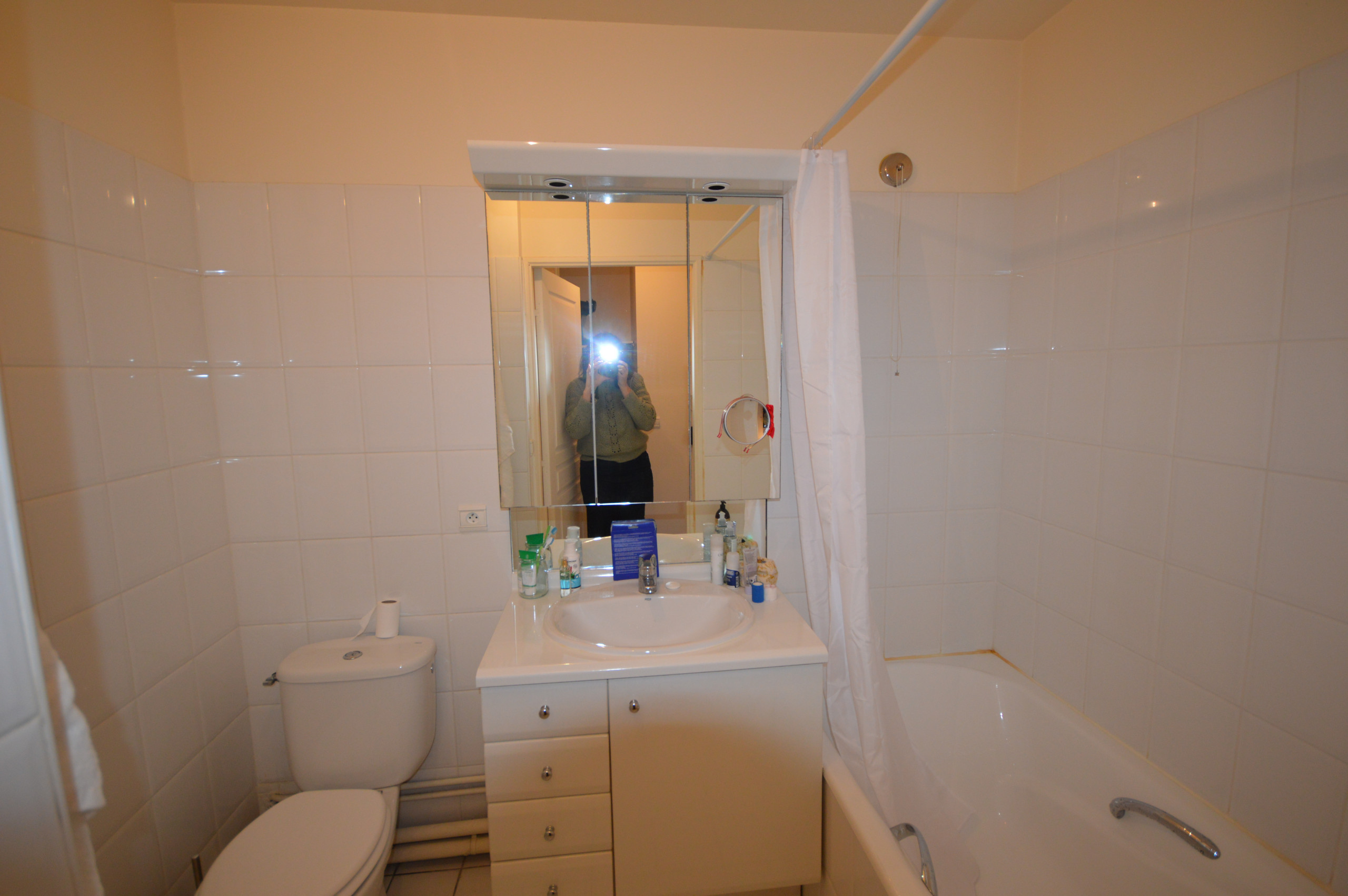 Avant. Niché au 5ᵉ étage sur rue d’une résidence des années 1990 située dans le quartier Exelmans à Paris, le 30 m² se présente ainsi : une entrée avec un placard sur la droite, une salle de bains sur la gauche, et une vaste pièce de vie lumineuse desservant une petite cuisine séparée.