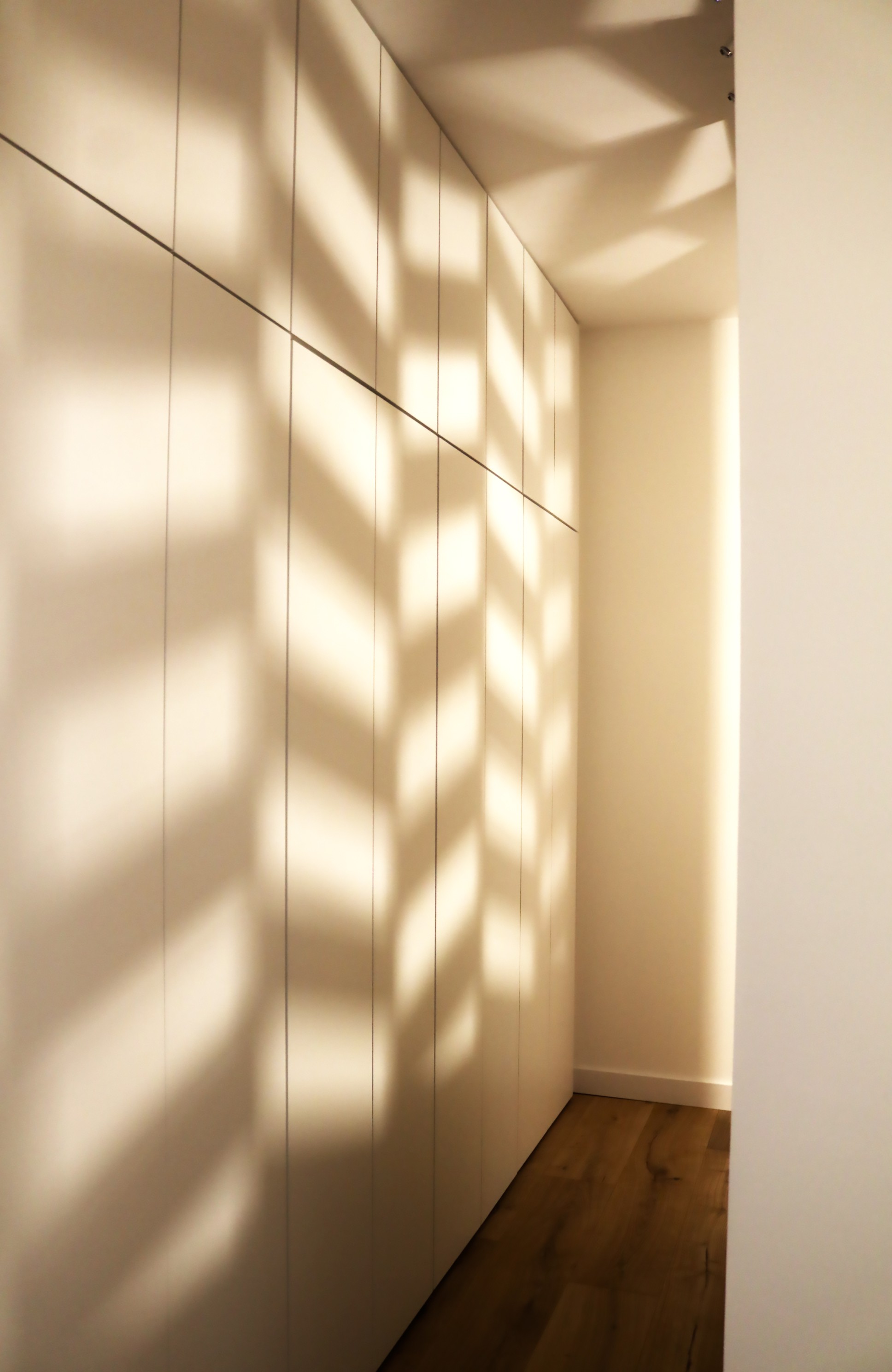 L’ouverture du dressing toute hauteur a fait plancher la pro car le passage n’était pas assez large pour des portes battantes et les propriétaires ne voulaient pas de portes coulissantes qui cachent l’un des vantaux quand l’autre est ouvert : « Nous avons équipé les portes de systèmes Hettich Wingline : lorsque l’on appuie au centre de deux portes, elles s’ouvrent ensemble automatiquement en accordéon. C’est un système assez difficile à équilibrer mais très efficace », décrypte-t-elle.