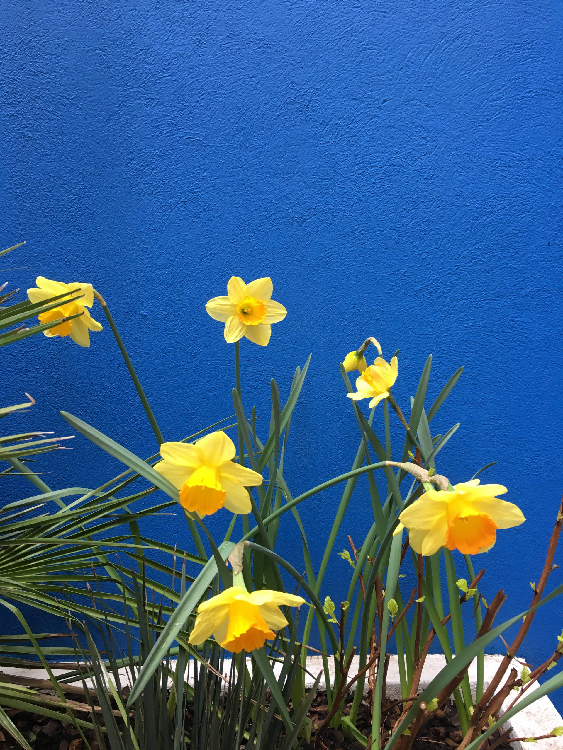 Et qu’ont pensé les propriétaires de leur nouveau patio ? « C’était exactement ce que nous souhaitions. Même par temps gris, le bleu apporte une luminosité incroyable, très joyeuse, et nous avons de la verdure toute l’année. Les voisins et le chat apprécient ! Kevin nous a même fait une surprise : il avait planté des jonquilles sans nous le dire et elles viennent de fleurir. Cette note de jaune vif sur le mur nous a comblés », nous ont-ils confié.