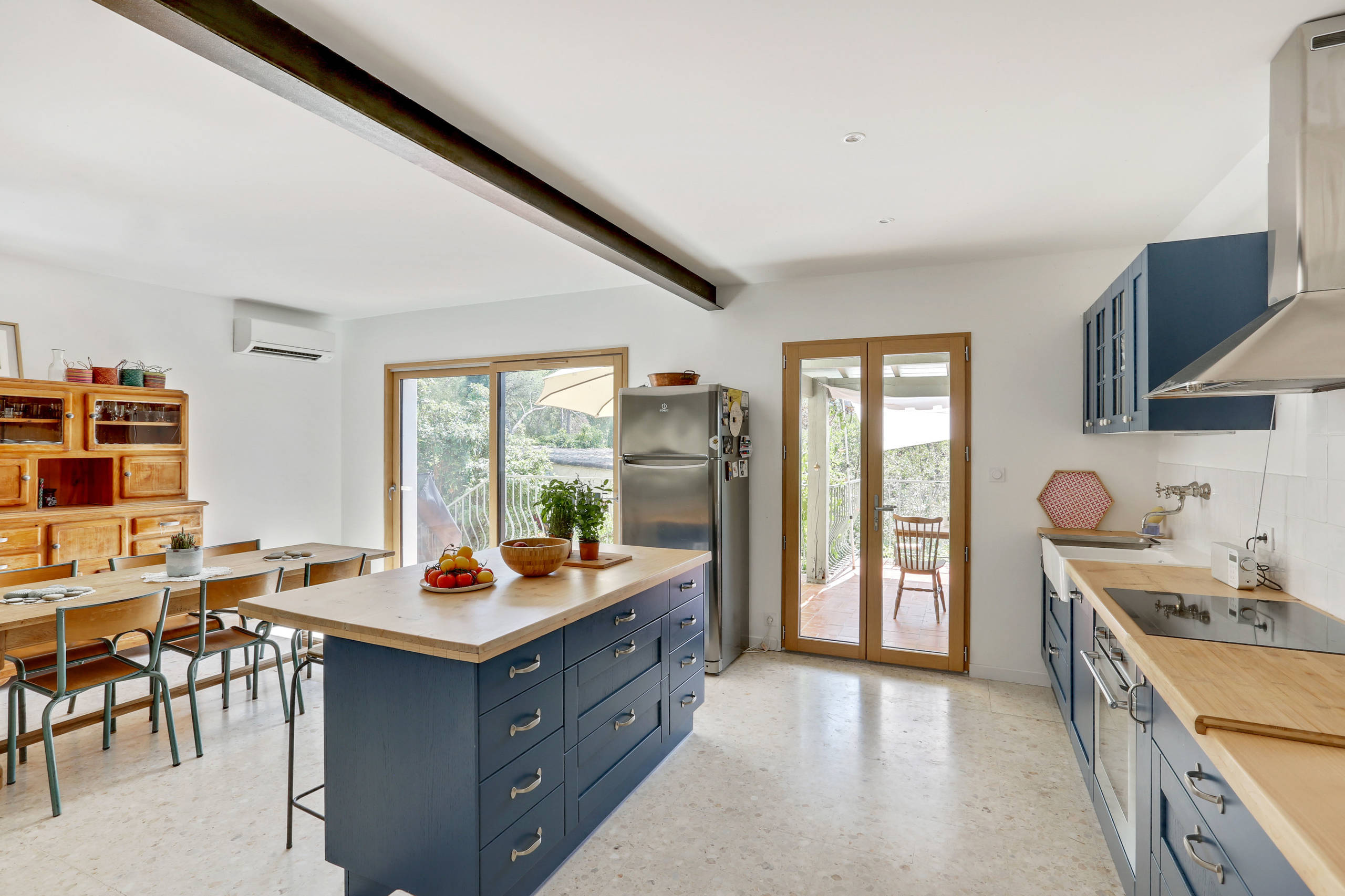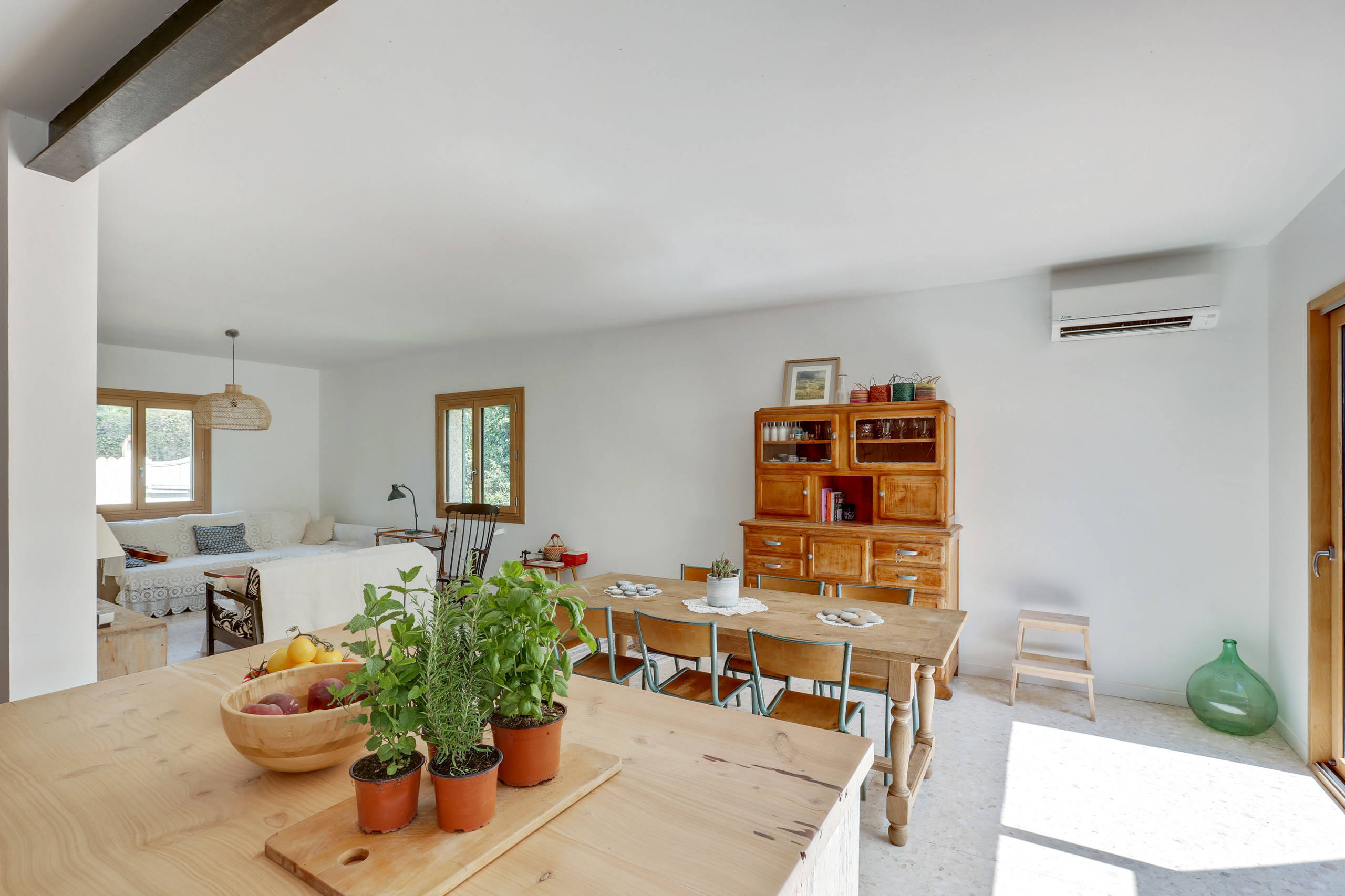 Après. Toutes les fenêtres ont été remplacées par des structures en aluminium et bois massif. La baie vitrée a été agrandie pour apporter un maximum de lumière dans cet espace. Celle-ci bénéficie désormais de 2,40 m de largeur.