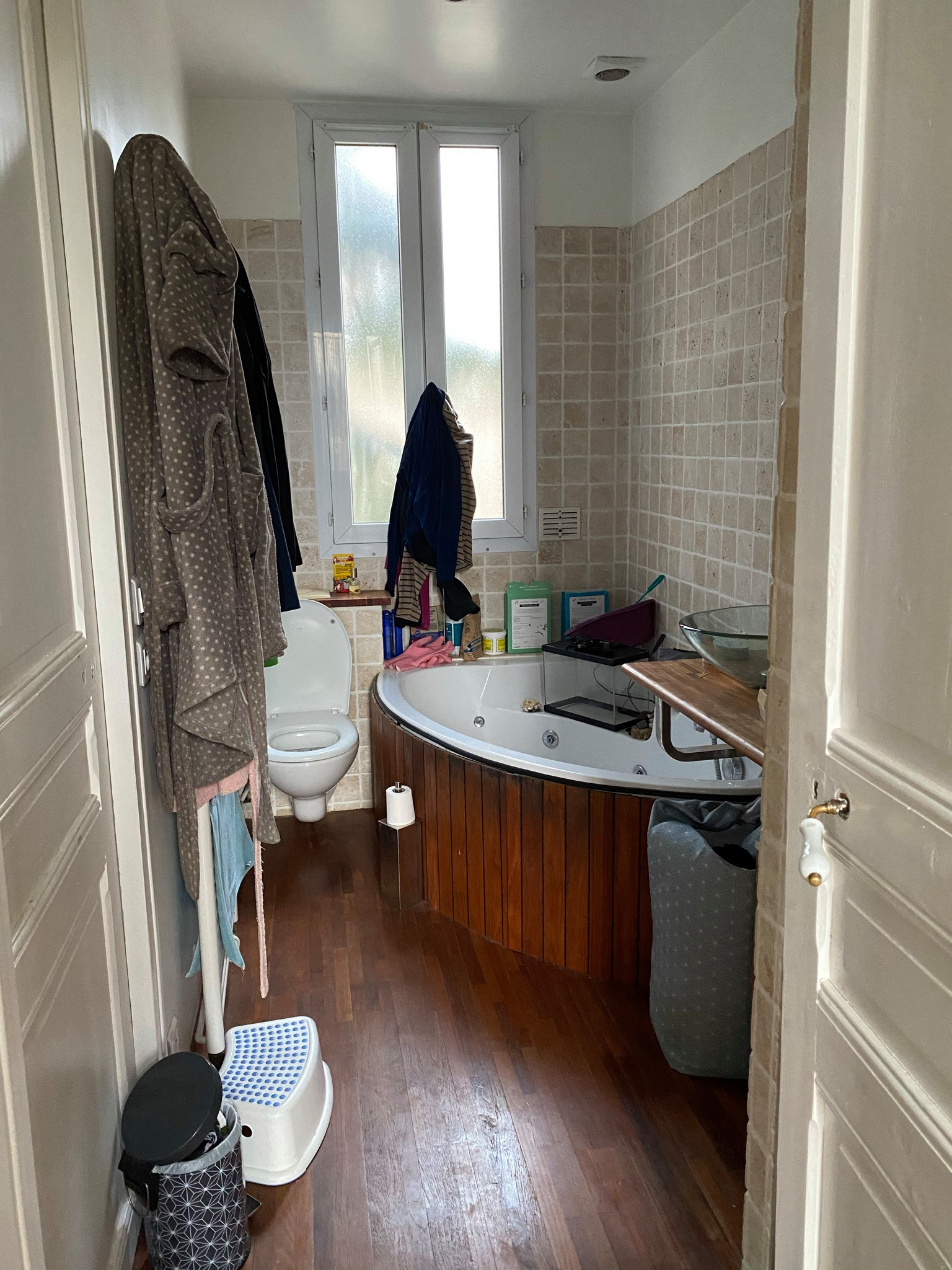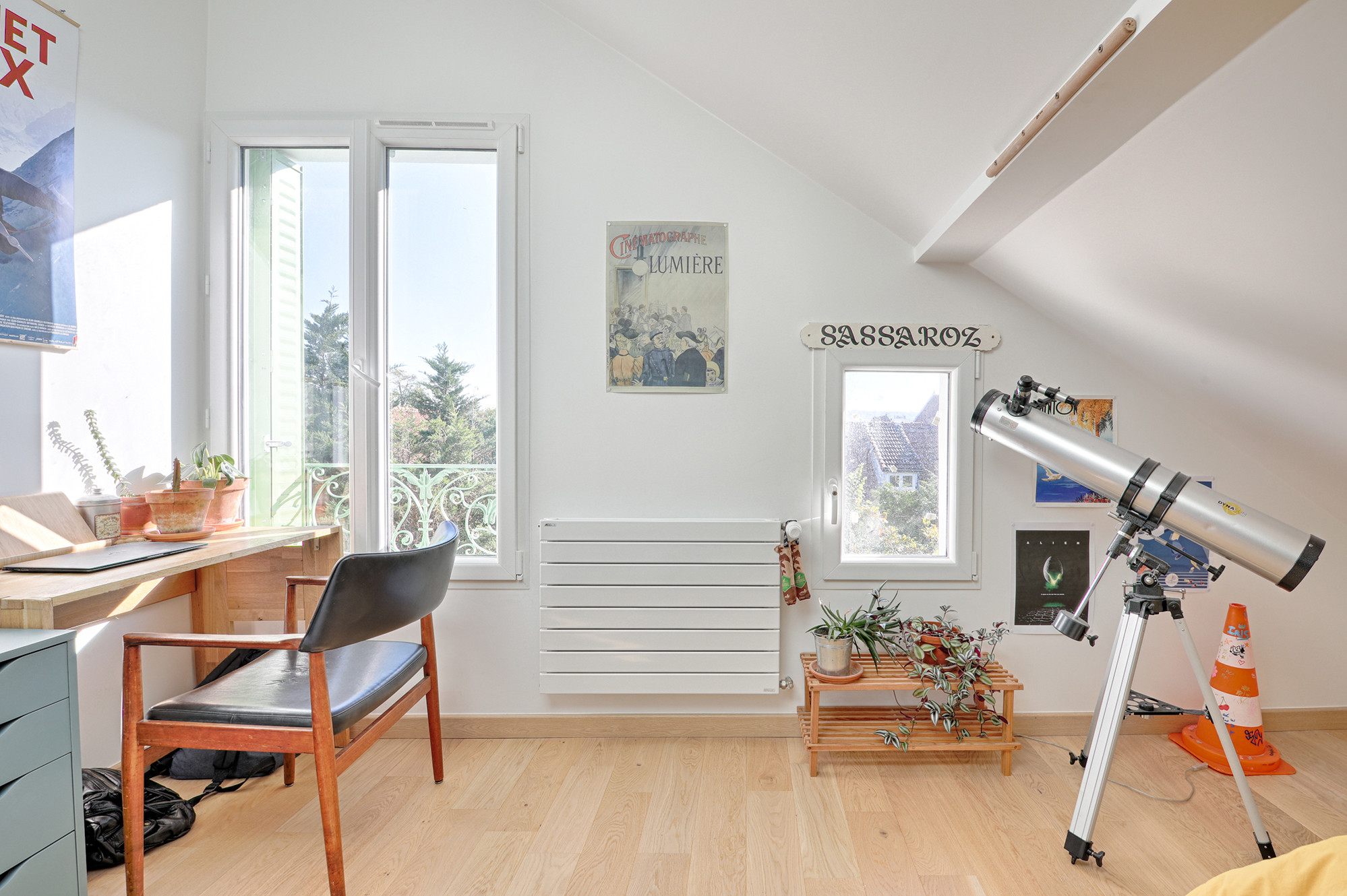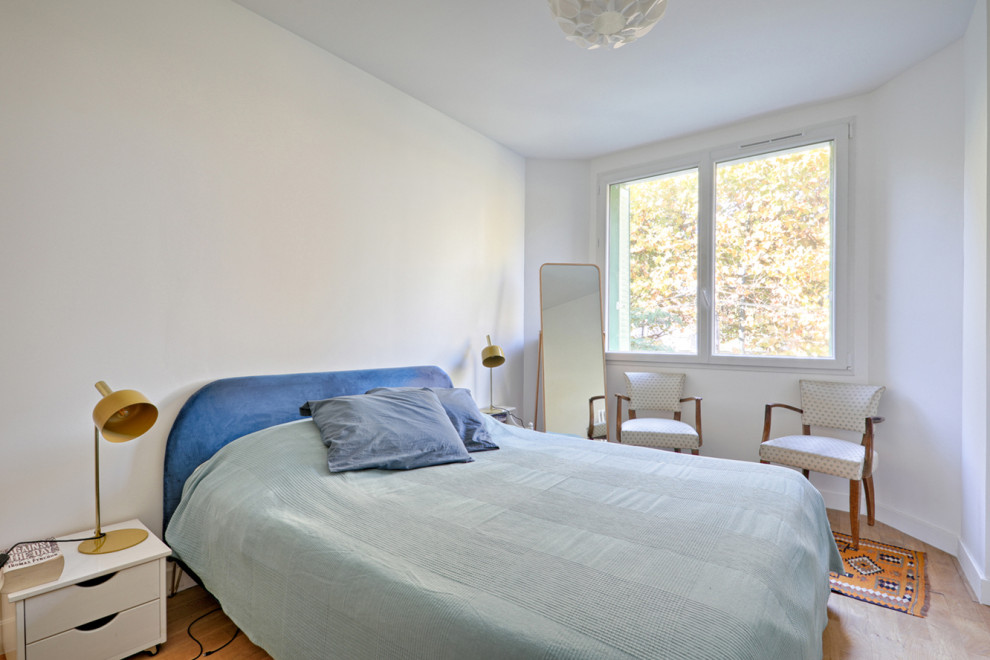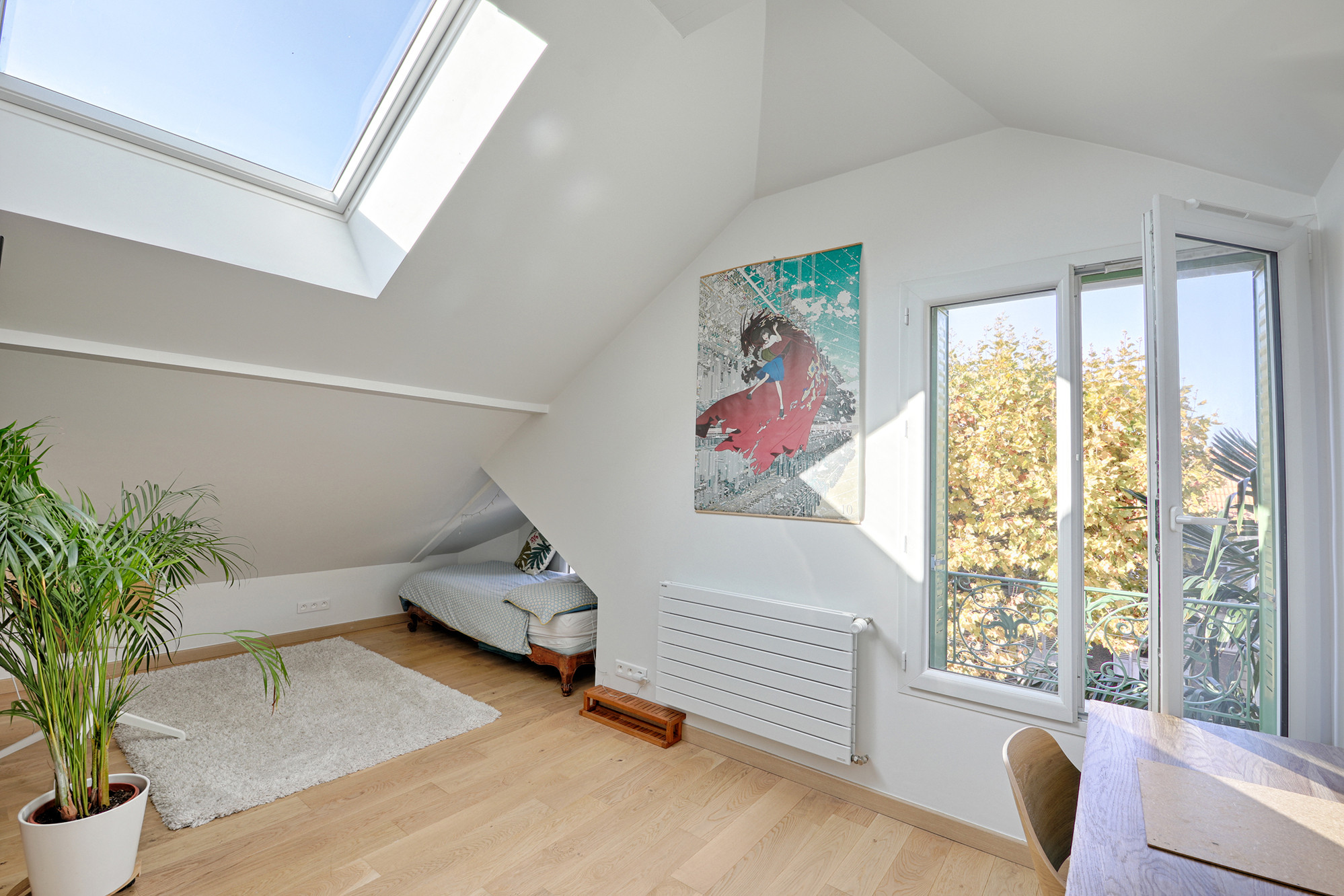 La chambre parentale a été agrandie par l’annexion du balcon, la salle de bains refaite au goût des maîtres d’ouvrage, deux bureaux ont été créés pour chaque adulte et une chambre d’amis est disponible en plus.