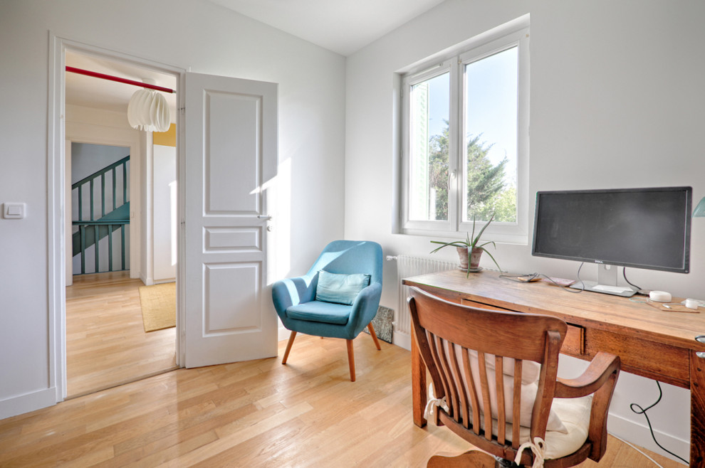 Après. Madame travaille au calme et avec vue dans ce bureau sur jardin qui a remplacé la chambre de la fillette. La pièce dessert également la chambre parentale.