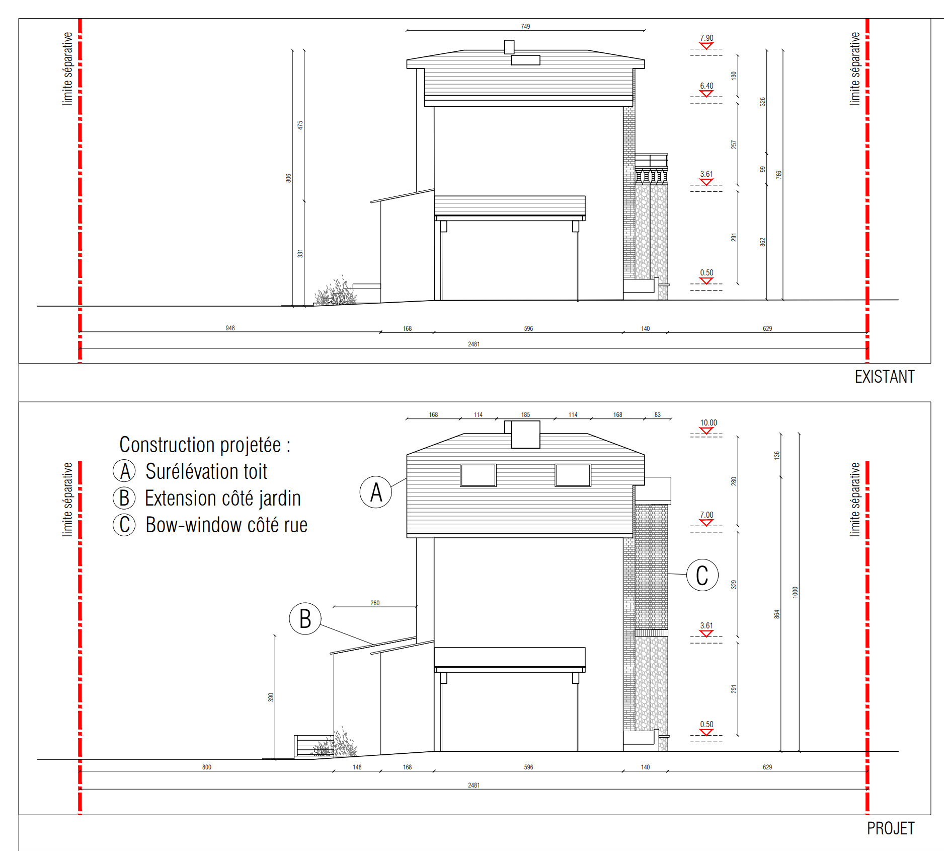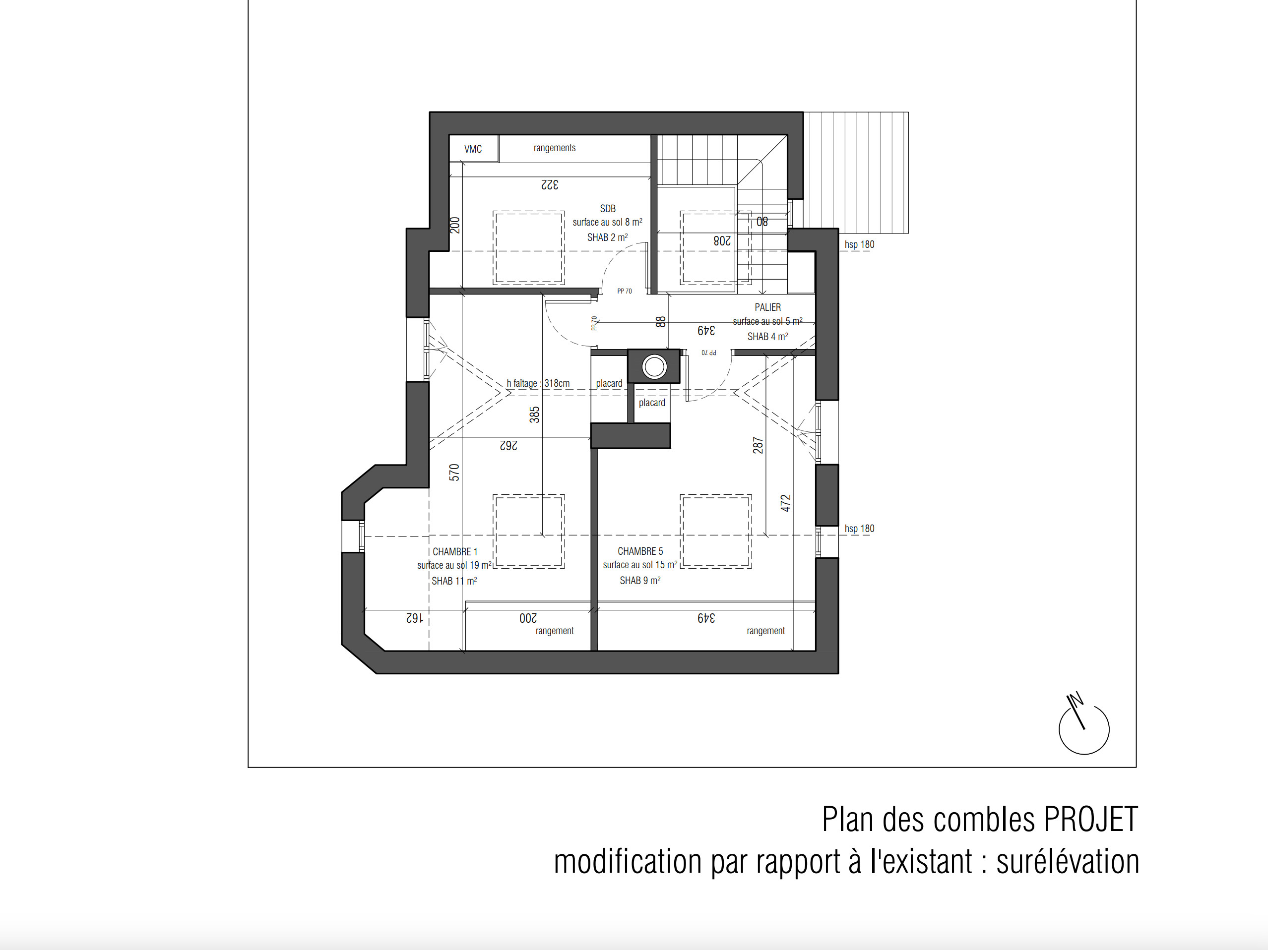 Surface : maison d’origine de 100 m² + extension et surélévation de 39 m²
