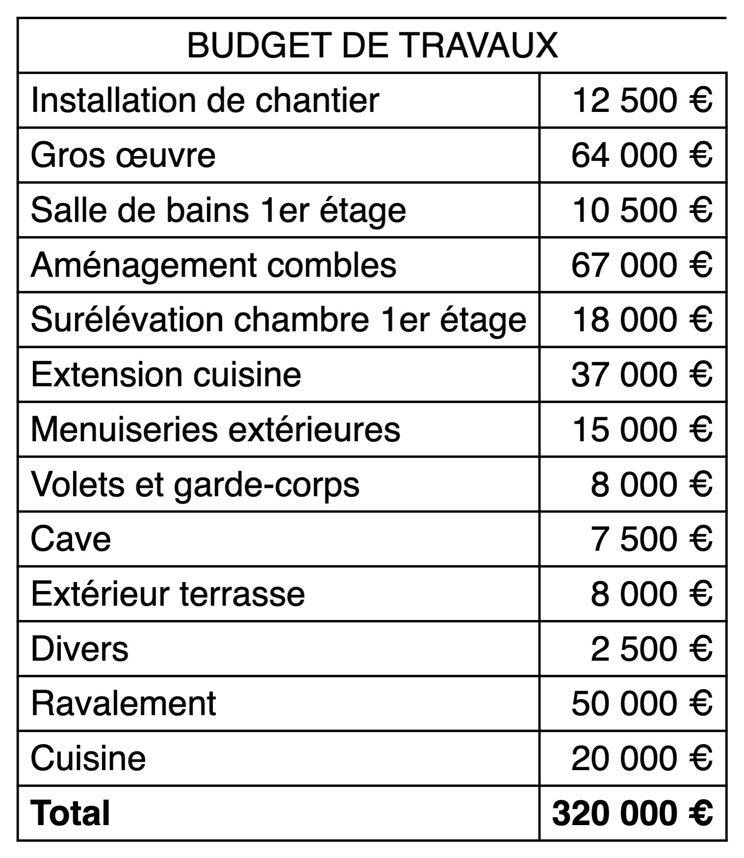 Budget : 320 000 euros hors honoraires (Budget détaillé en fin d’article)