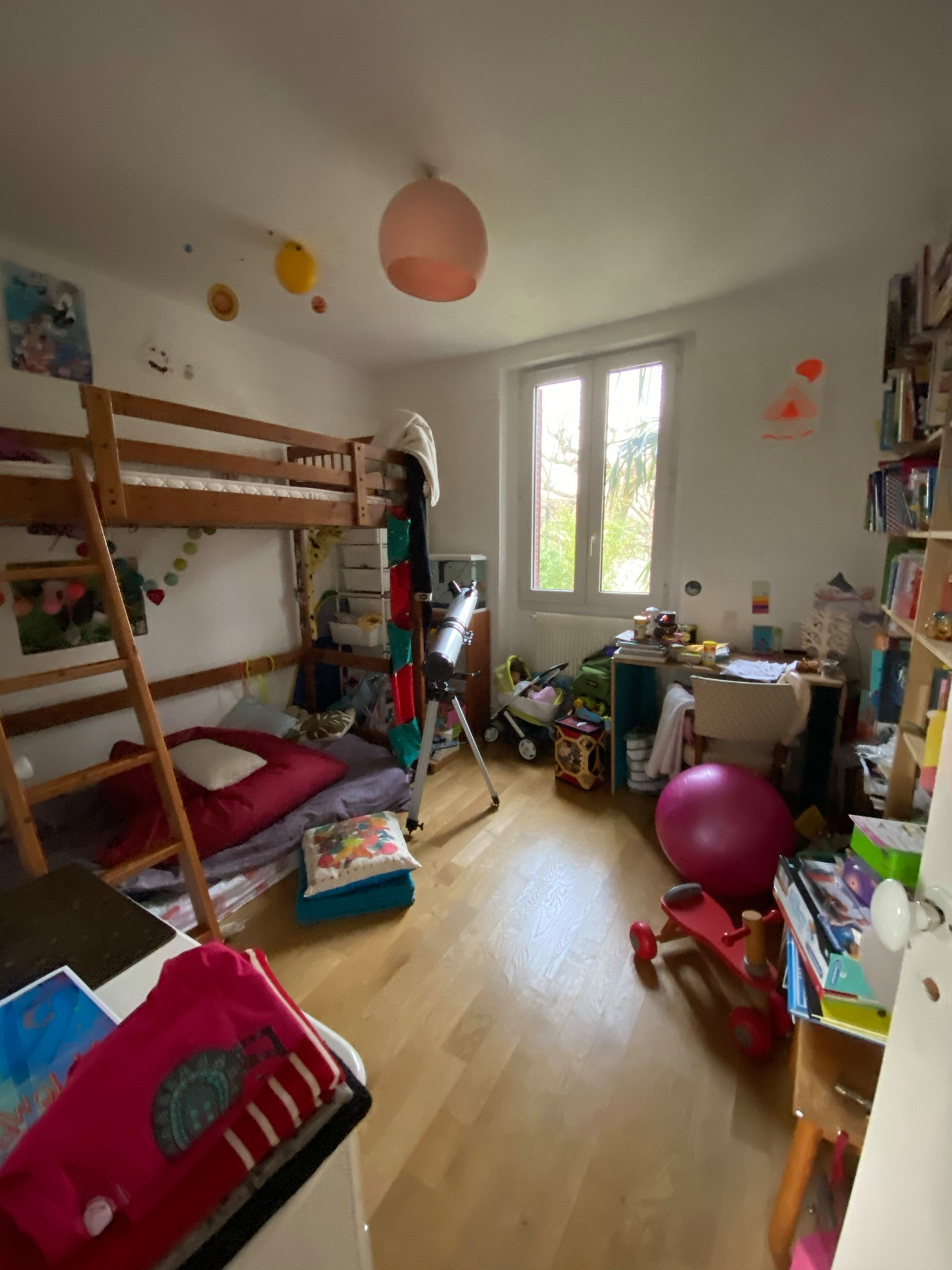 La chambre de la cadette se trouve au-dessus de l’extension de la chambre parentale.