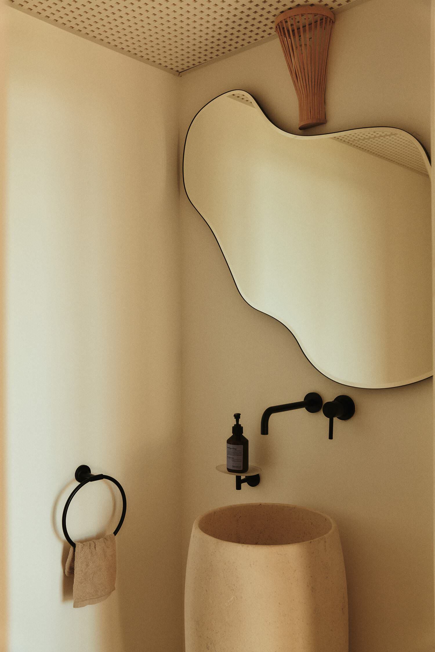 Cette vasque totem se trouve dans les WC invités du niveau bas.