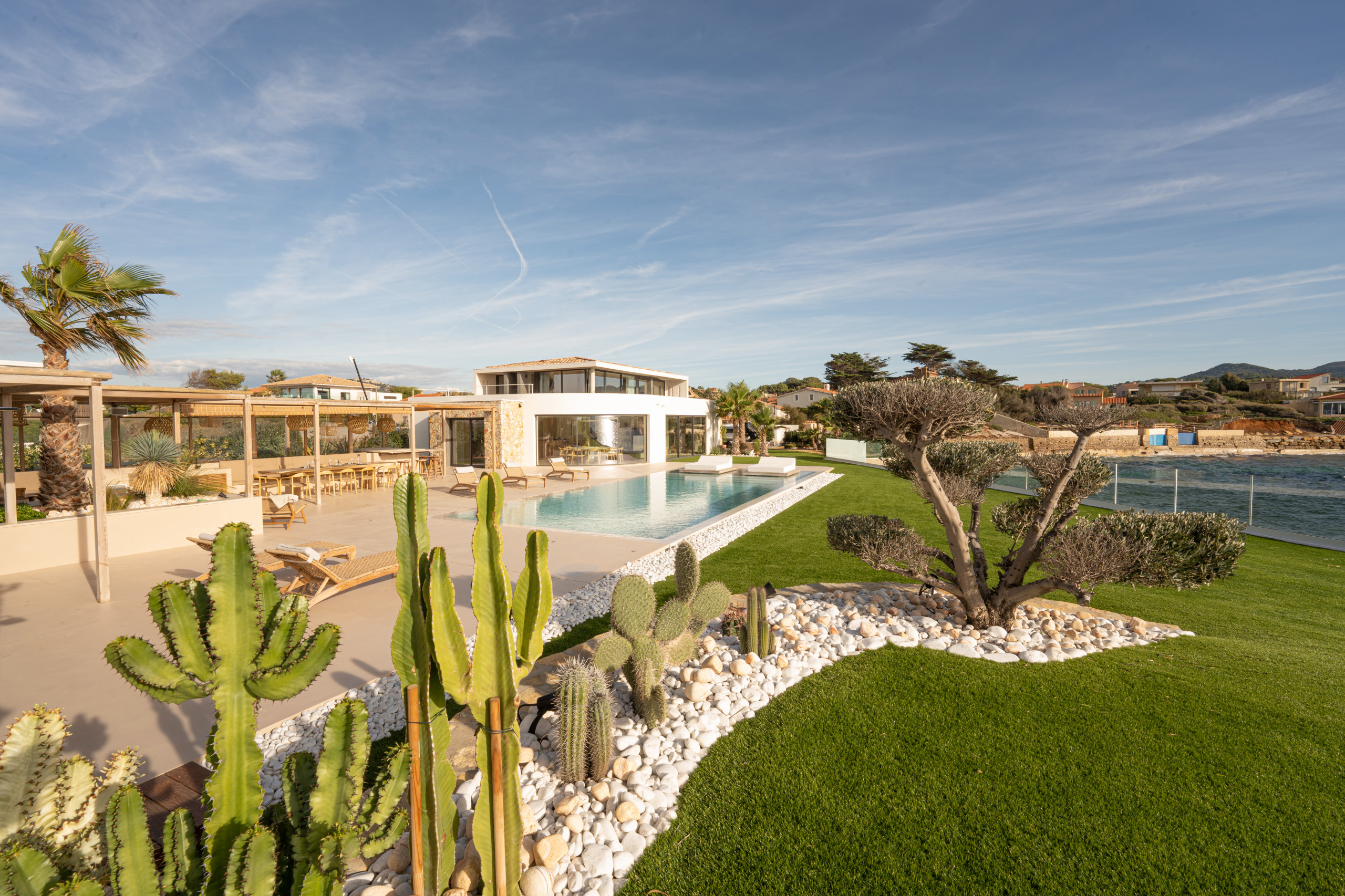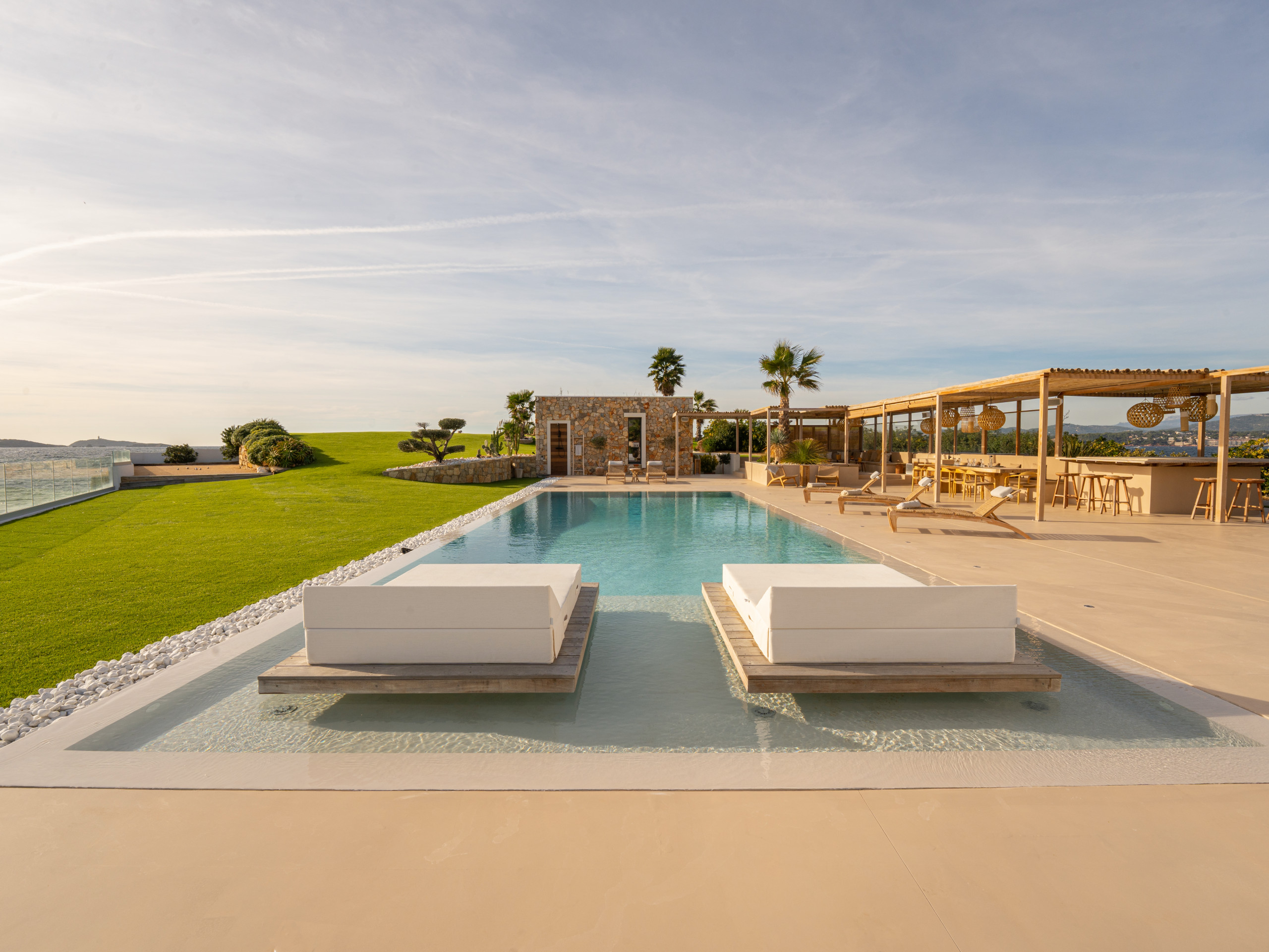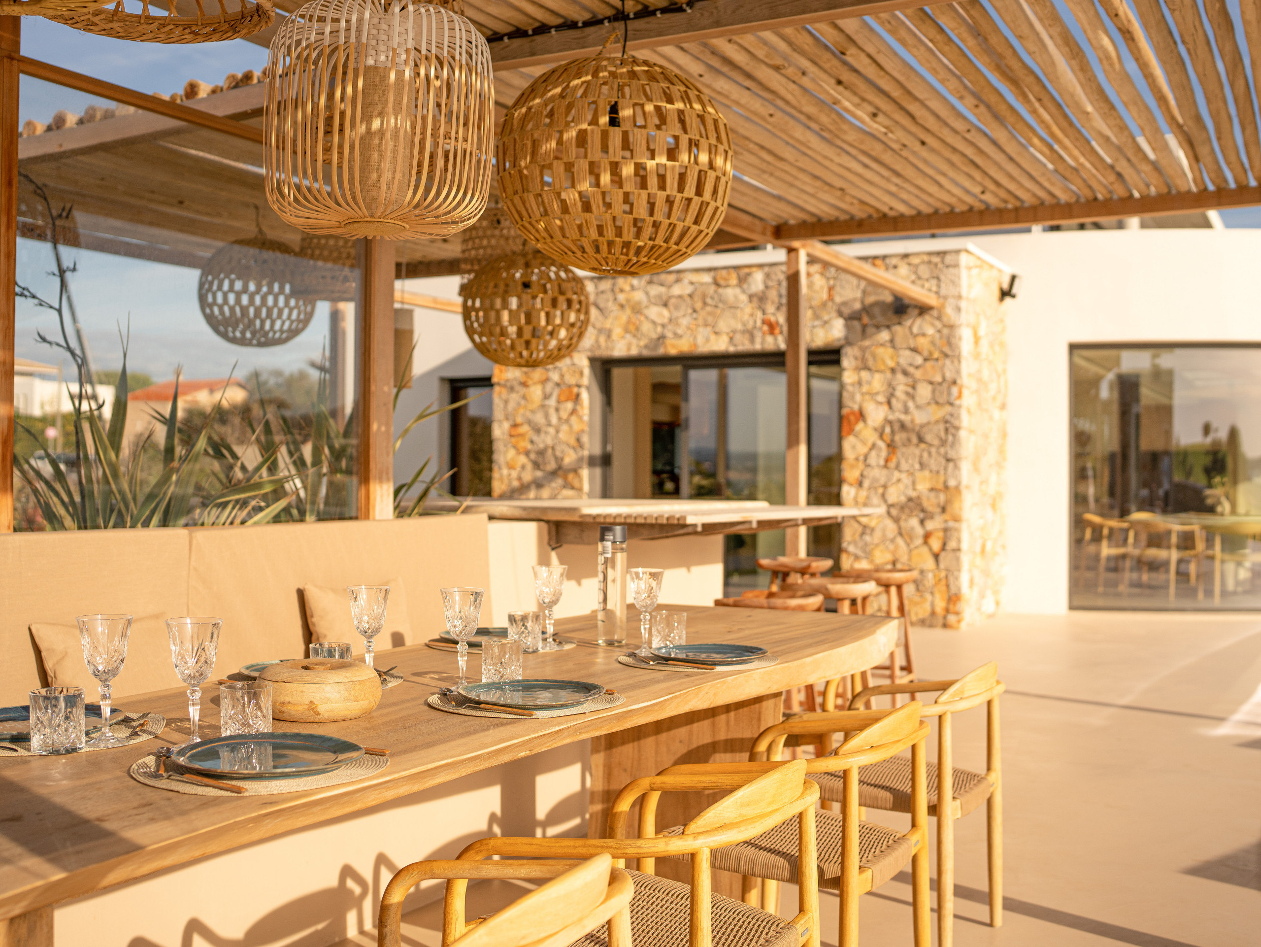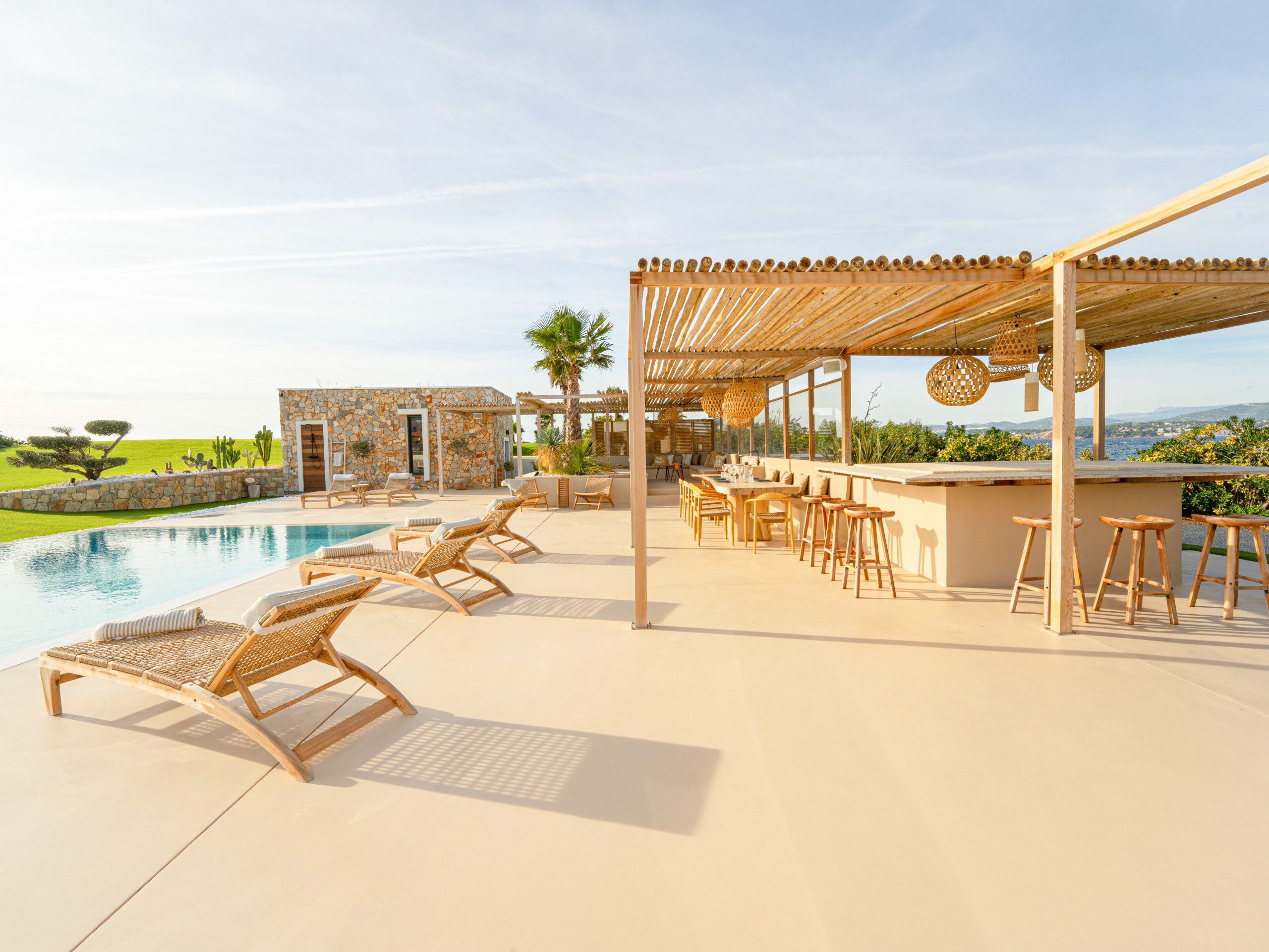 Son détail préféré : « les suspensions en rotin qui apportent une belle ambiance le soir ». Pour la petite histoire, le propriétaire avait d’abord pensé à une mise en lumière avec des bougies mais cette solution était incompatible avec le mistral qui peut souffler fort sur les côtes méditerranéennes.