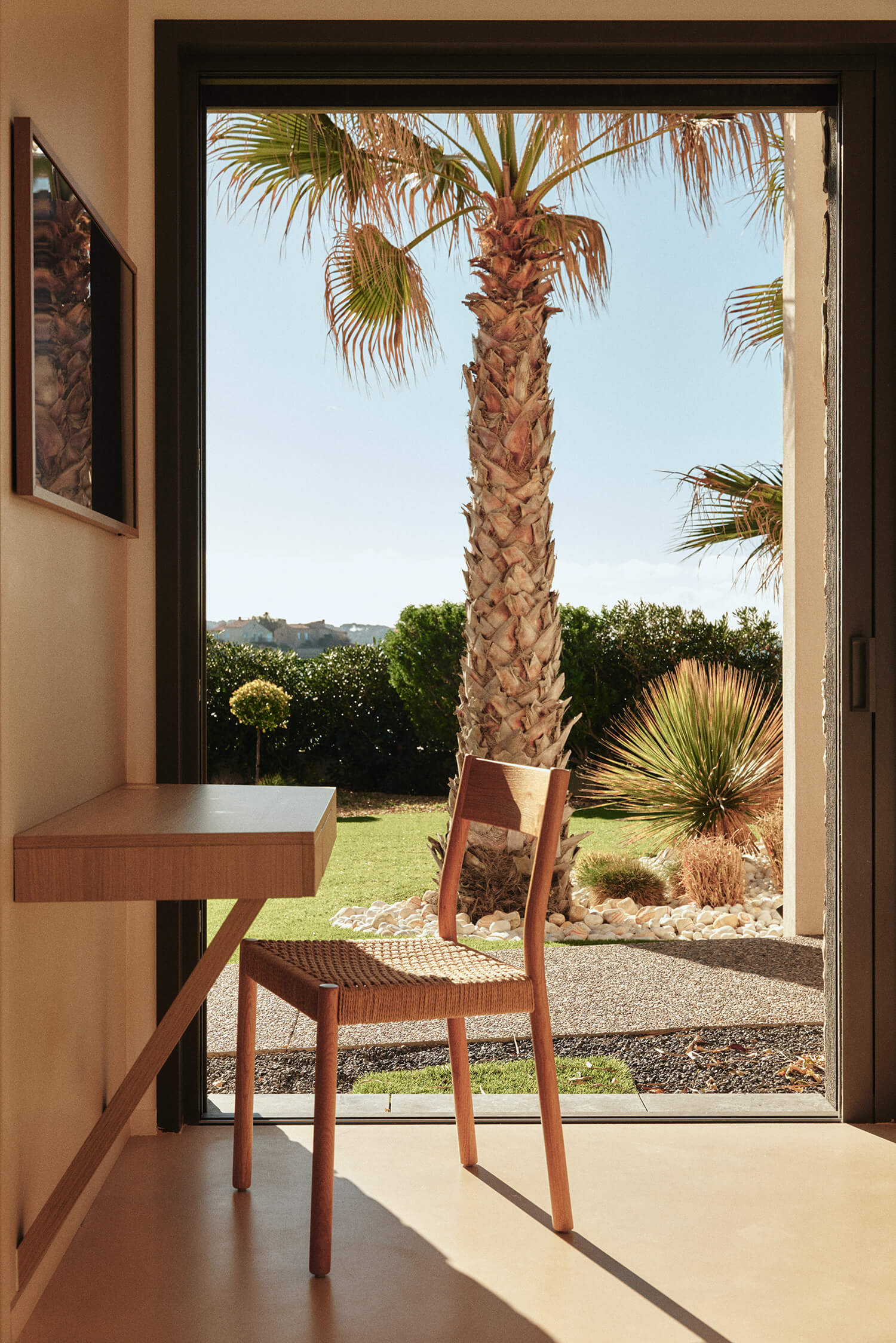 « Nous avons également choisi la palette de teintes et donné des conseils sur le choix des sols », précise Kasia. Inspirées par les couleurs du paysage naturel méditerranéen aux alentours, autant que par le nouveau bardage de pierre choisi par le propriétaire pour recouvrir le pool house, elles ont inventé une ambiance douce dans les tons de beige et de pierre blonde, « des couleurs terreuses qui contrastent bien avec le bleu du ciel de la mer et la végétation qui entoure la maison », estime-t-elle.
