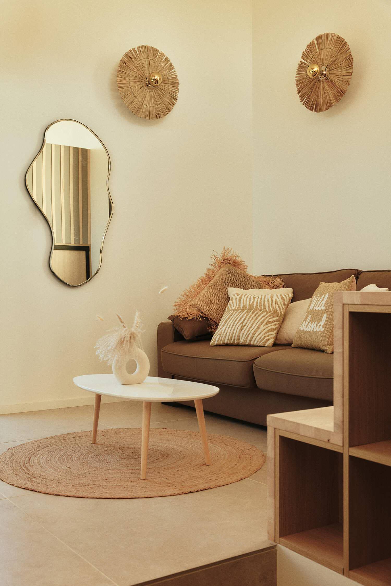 « Nous nous sommes orientées vers une palette naturelle, beige, marron, inspirée par la terre et la pierre, qui brille bien avec le soleil », explique Kasia.