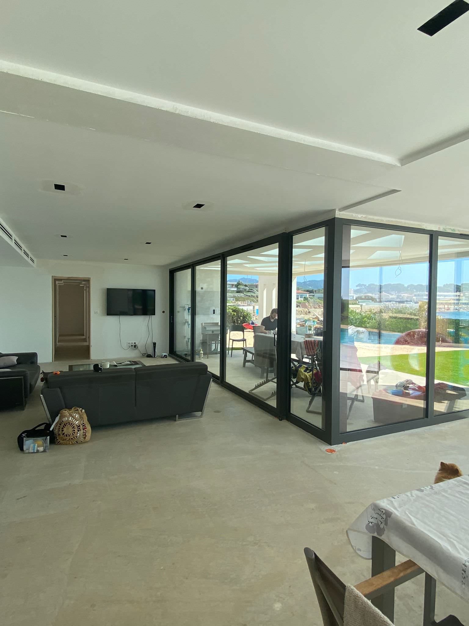 Avant. La villa dont on découvre ici le séjour avant travaux n’était pas en mauvais état, mais les nouveaux propriétaires souhaitaient la personnaliser et l’adapter à leurs besoins. « La vue à 320° sur la mer était juste époustouflante. Nous n’avions aucune contrainte d’espace par rapport aux petites surfaces parisiennes, nous étions libres de créer. C’était un projet d’exception, follement exaltant ! », commence l’architecte et architecte d’intérieur Kasia Kaliczka.