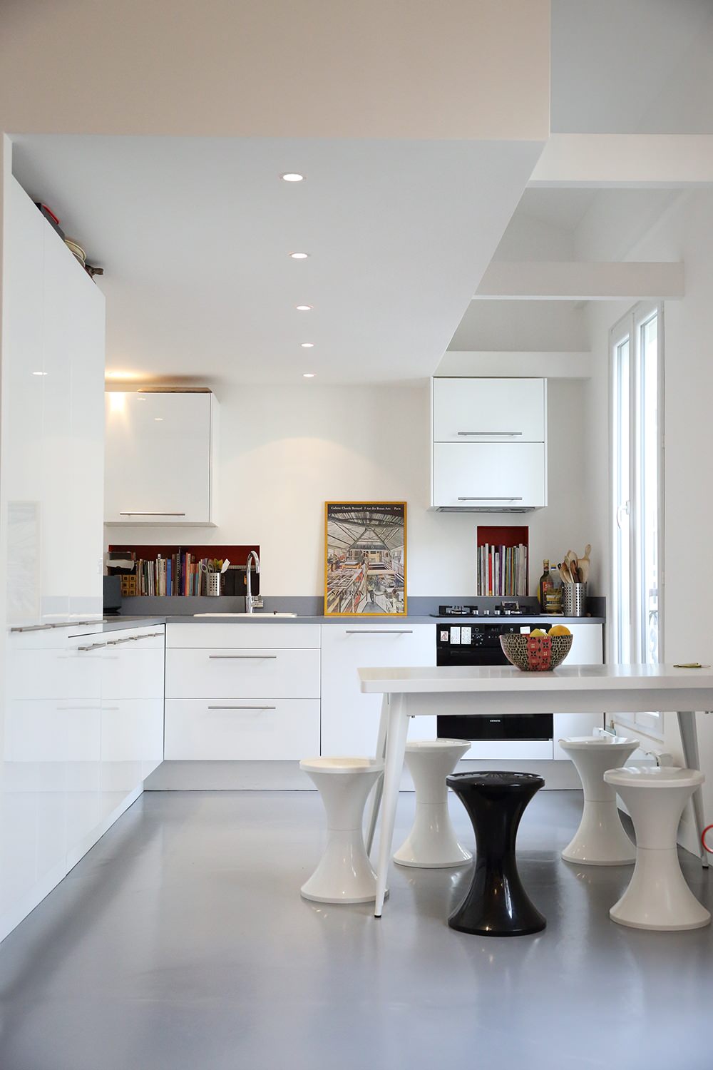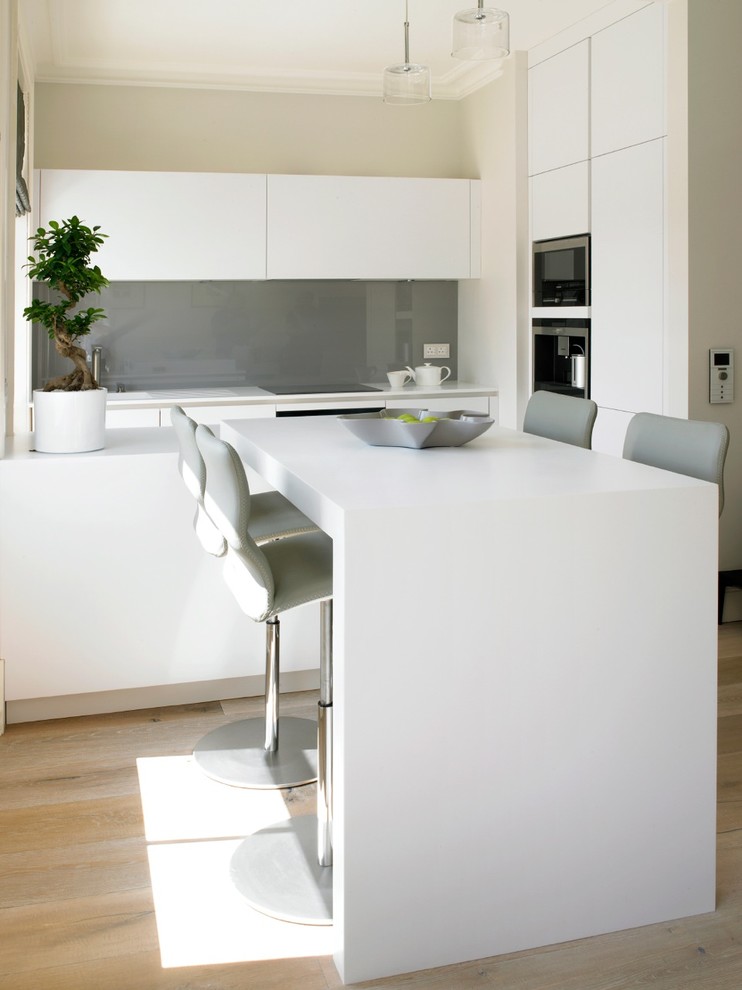 3. Elle permet, en n’occupant que deux murs, de pouvoir y installer un espace repas, plus ou moins important selon la superficie de votre pièce. Faites attention à ne pas choisir des assises trop imposantes pour ne pas surcharger visuellement l’espace. Optez pour des assises transparentes, des bancs ou des tabourets.