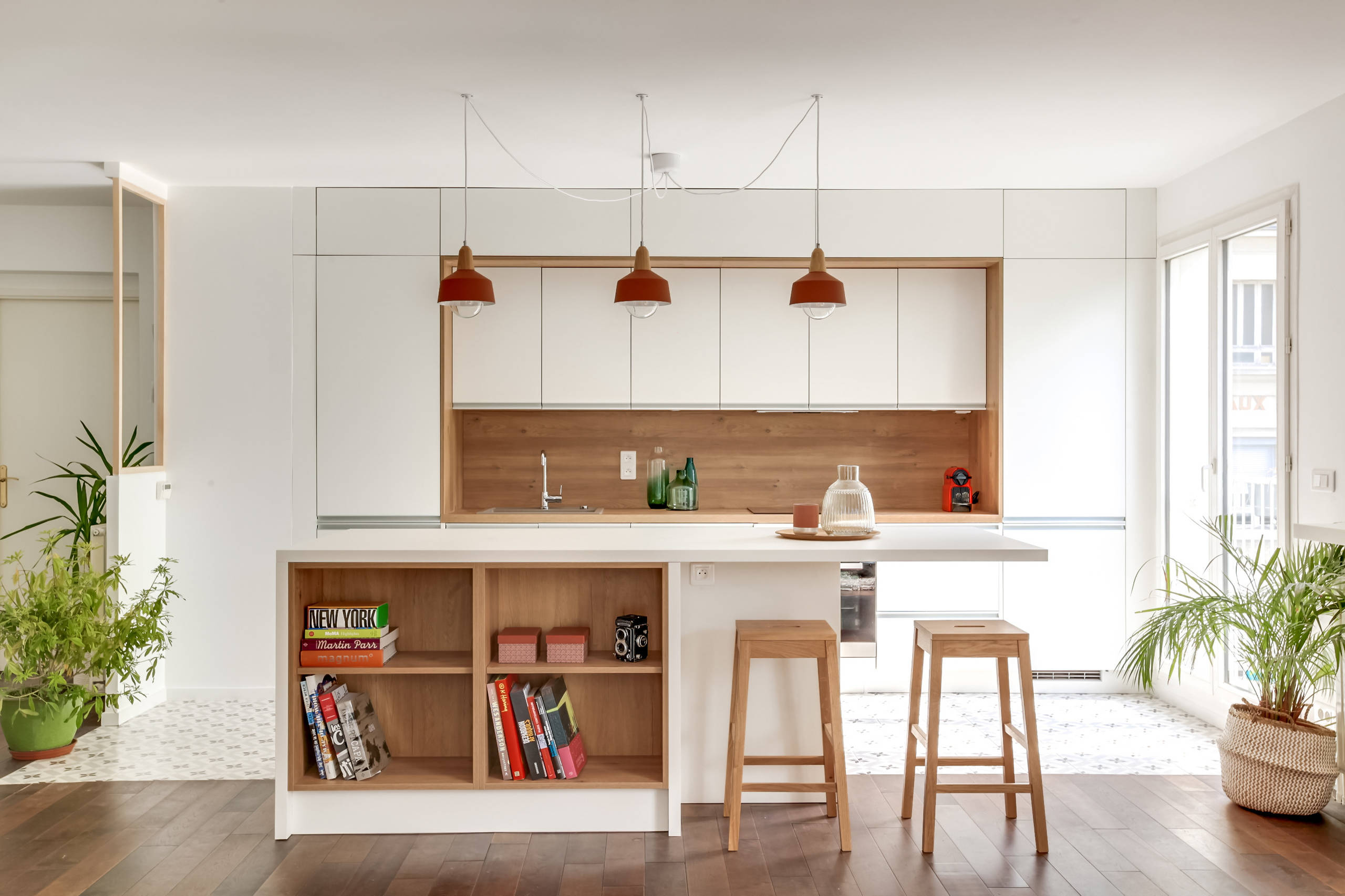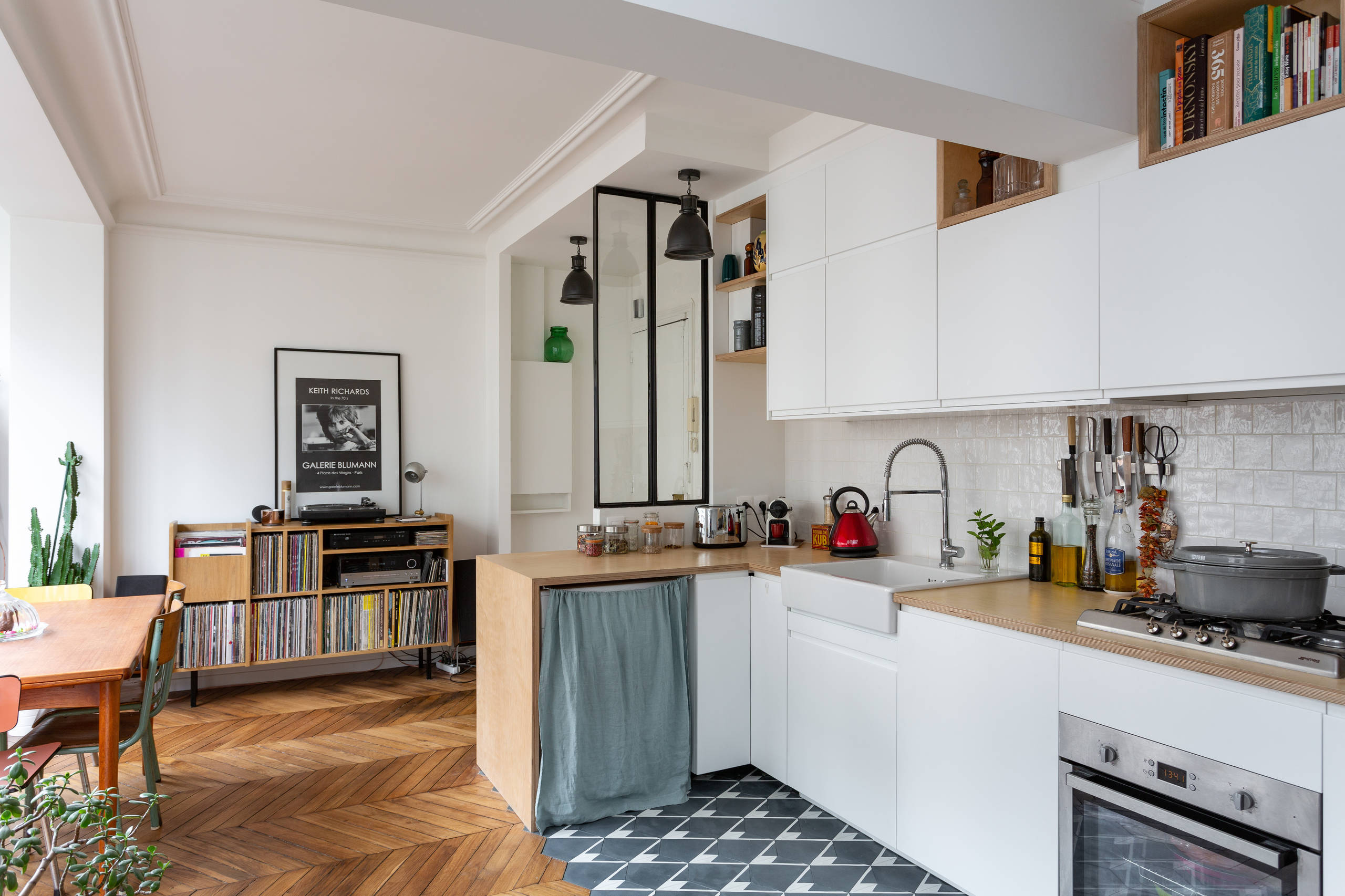 Pour prendre un exemple concret, la cuisine ci-dessus, posée à Paris dans le quartier Parmentier, est notre dernier projet en date. Pour cette base Ikea Metod avec conception d’un architecte et la customisation qui lui donne un air sur mesure (verrière, niches et jambage en multiplis de bouleau), les clients ont déboursé 15 000 euros.