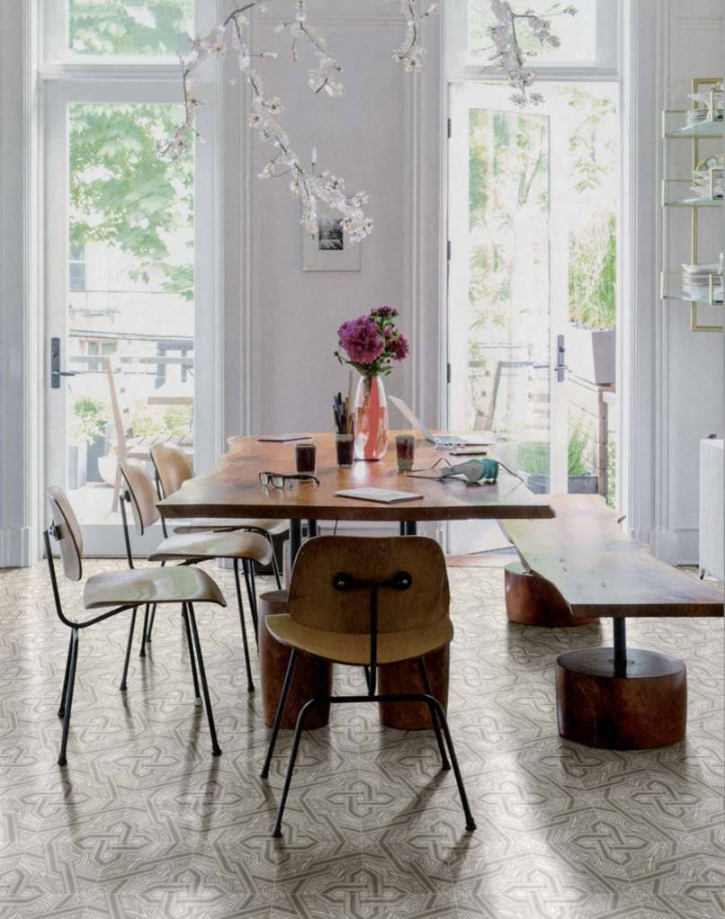 Les motifs géométriques ont le vent en poupe. Mais, à moins de miser sur un revêtement en PVC, il était jusque là difficile de trouver un matériau résistant qui permettait de laisser libre cours à sa créativité. Avec les carreaux à motifs géométriques, ce sont les atouts optiques d’un sol vinyle qui sont mis en avant, sans les inconvénients. Teintés dans la masse, les motifs ne subissent ni les affres de la lumière, ni ceux du vieillissement et ne se décoloreront pas avec le temps.