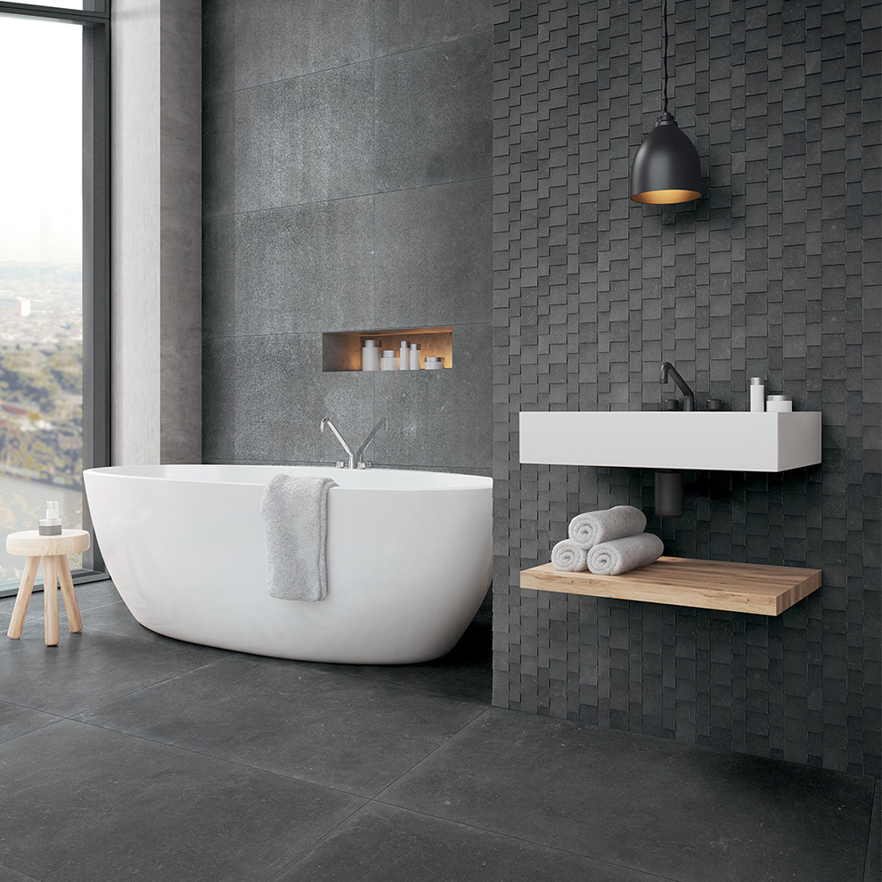 On vous conseille : Le carrelage imitation béton, si vous rêvez d’un sol brut qui ne se patinera pas avec le temps.