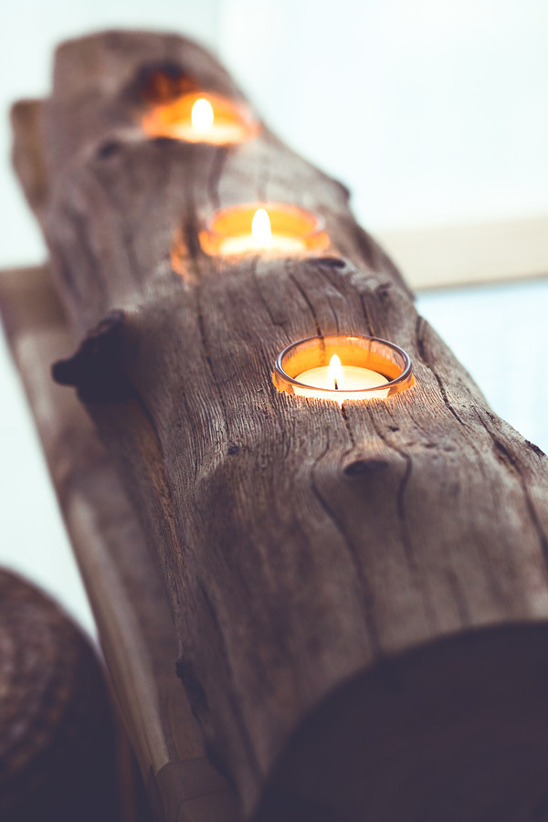 Pour réaliser un bougeoir original, vous pouvez réaliser quelques trous au couteau à bois si l’essence est tendre, voire à la mini-scie circulaire. En centre de table, pour les dîners d’automne, il sera du plus bel effet.