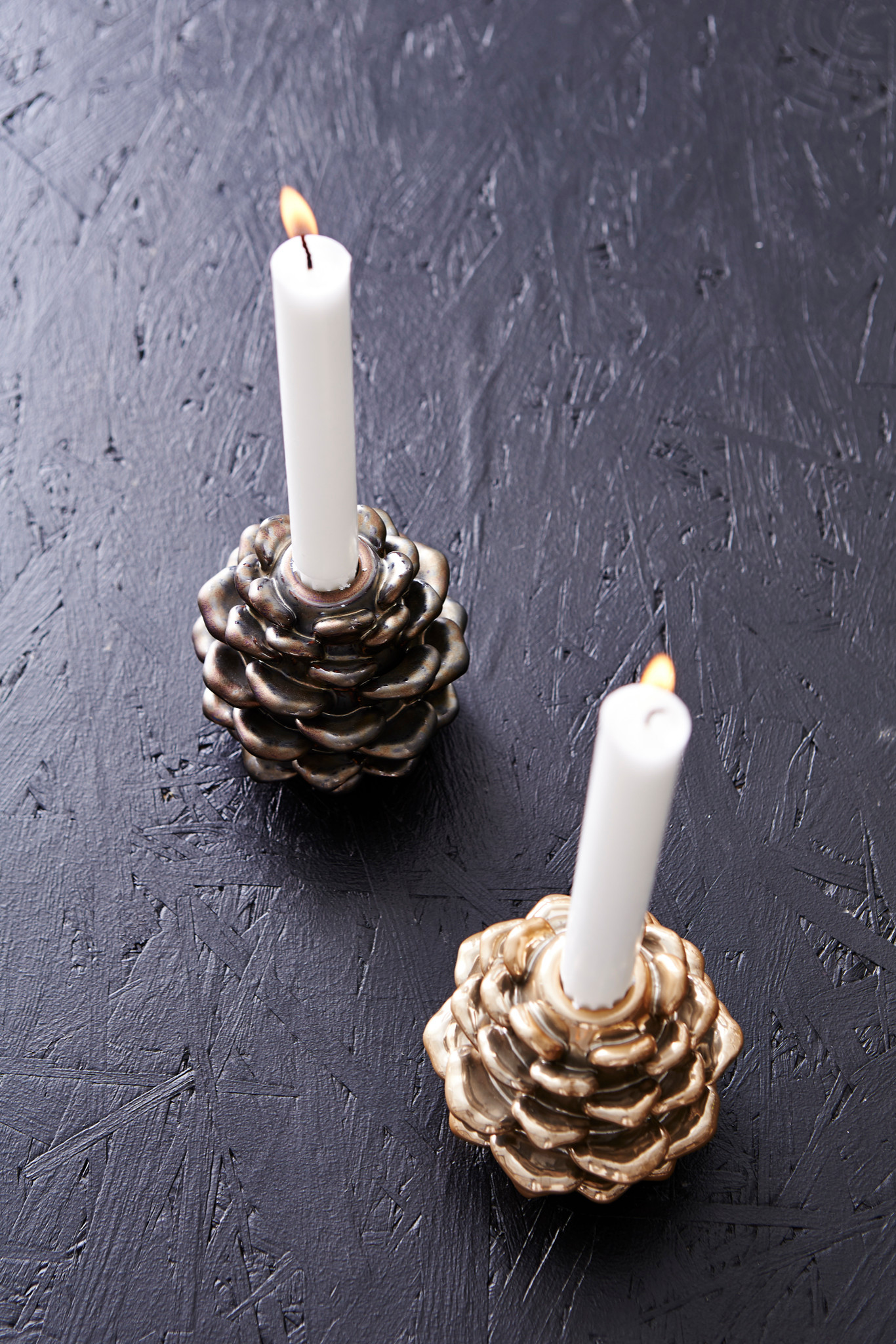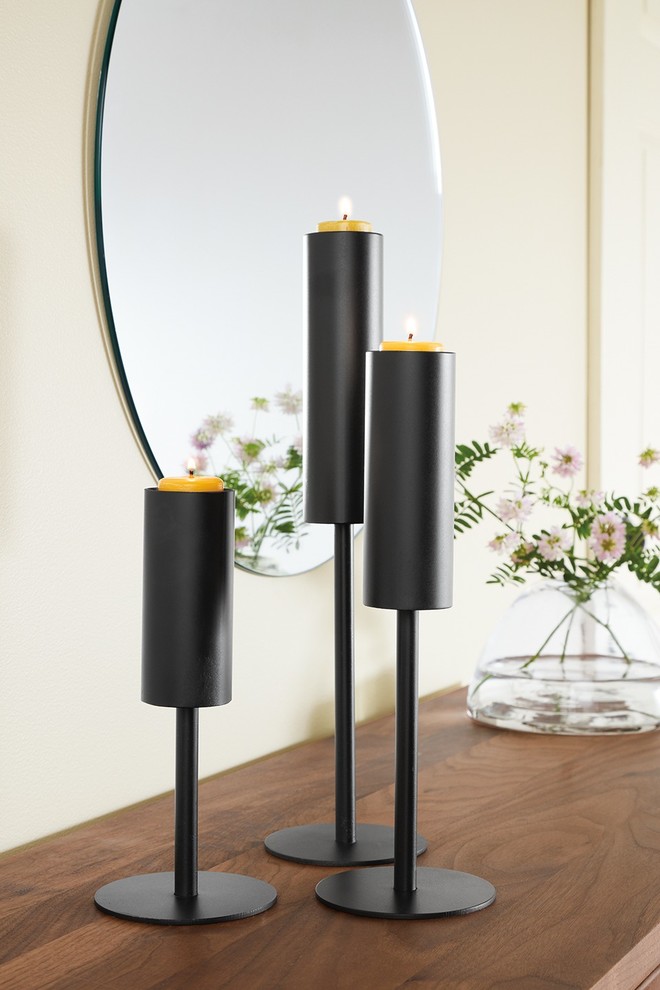 Même les bougeoirs d’esprit candélabres d’église reviennent sur le devant de la scène. S’il n’est pas question de dresser un autel dans un coin de votre salon, il s’agit d’y ajouter un peu de mystère, de lumière, d’esprit ! Ces bougeoirs montés sur de hautes tiges accueillent des cierges colorés pour jouer sur les contrastes et marquer leur modernité.