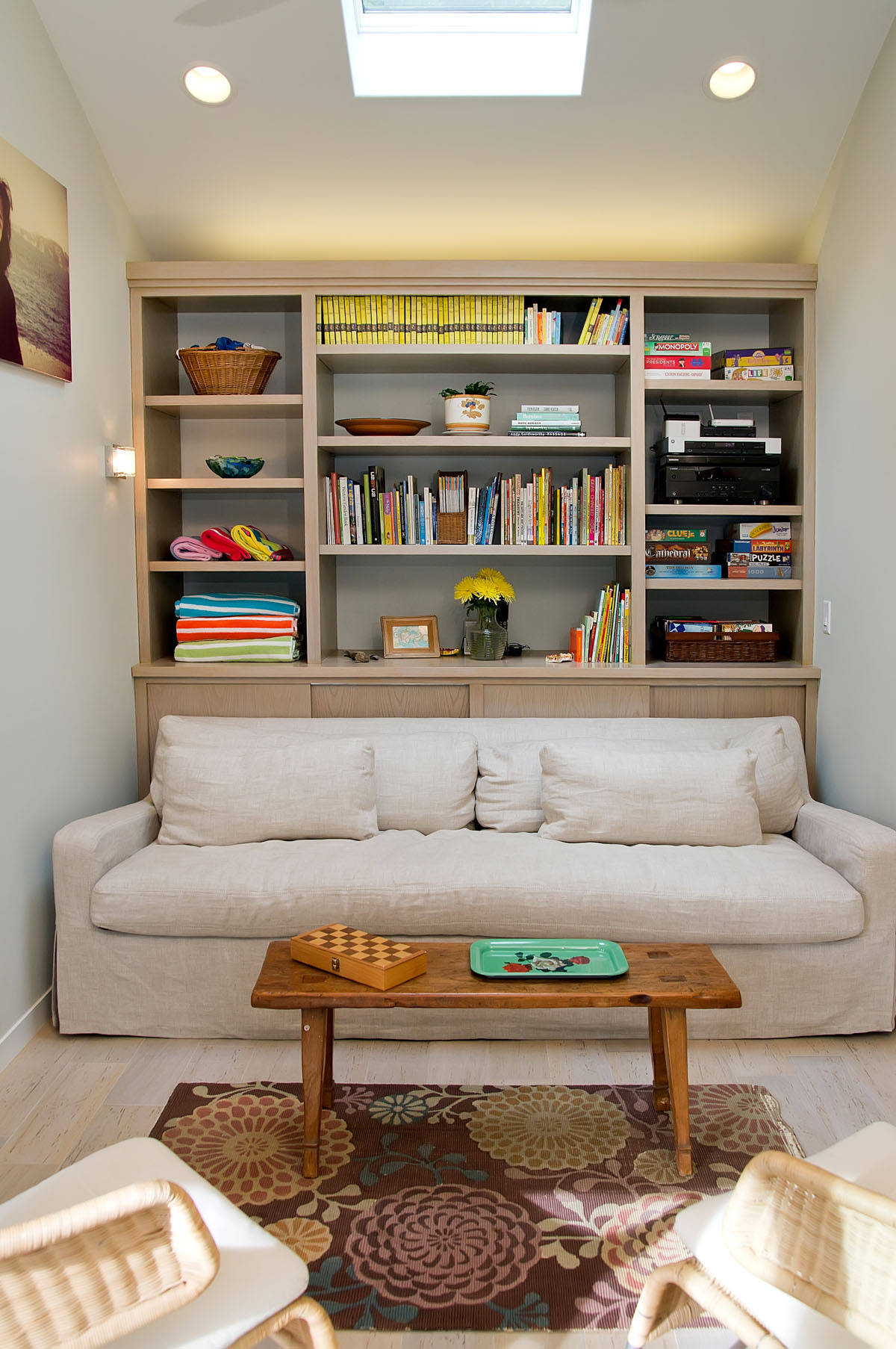 Si vous avez la chance d’être propriétaire et de vous faire faire des meubles sur mesure, profitez-en pour y intégrer des espaces dédiés à vos enfants.