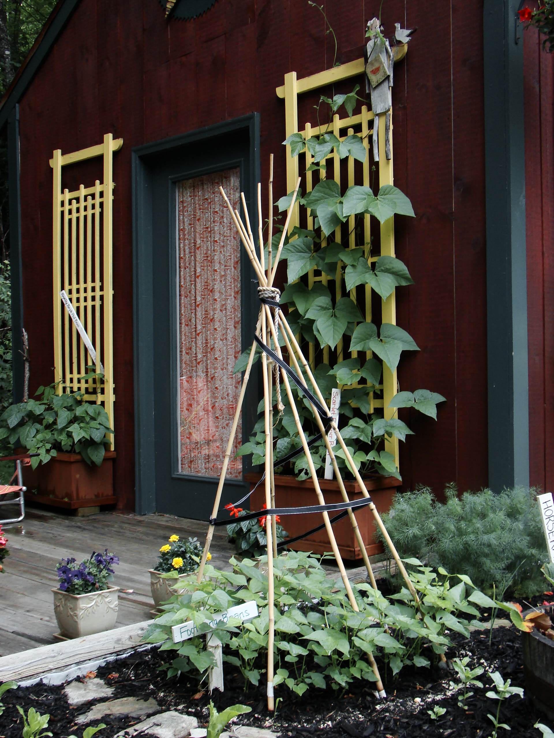 Installez un support pour aider les plantes à pousser : un tuteur, un treillis, du grillage, une structure en tipi faite de planches, de câbles et de ficelle entrelacés, ou encore un mur ou une clôture.