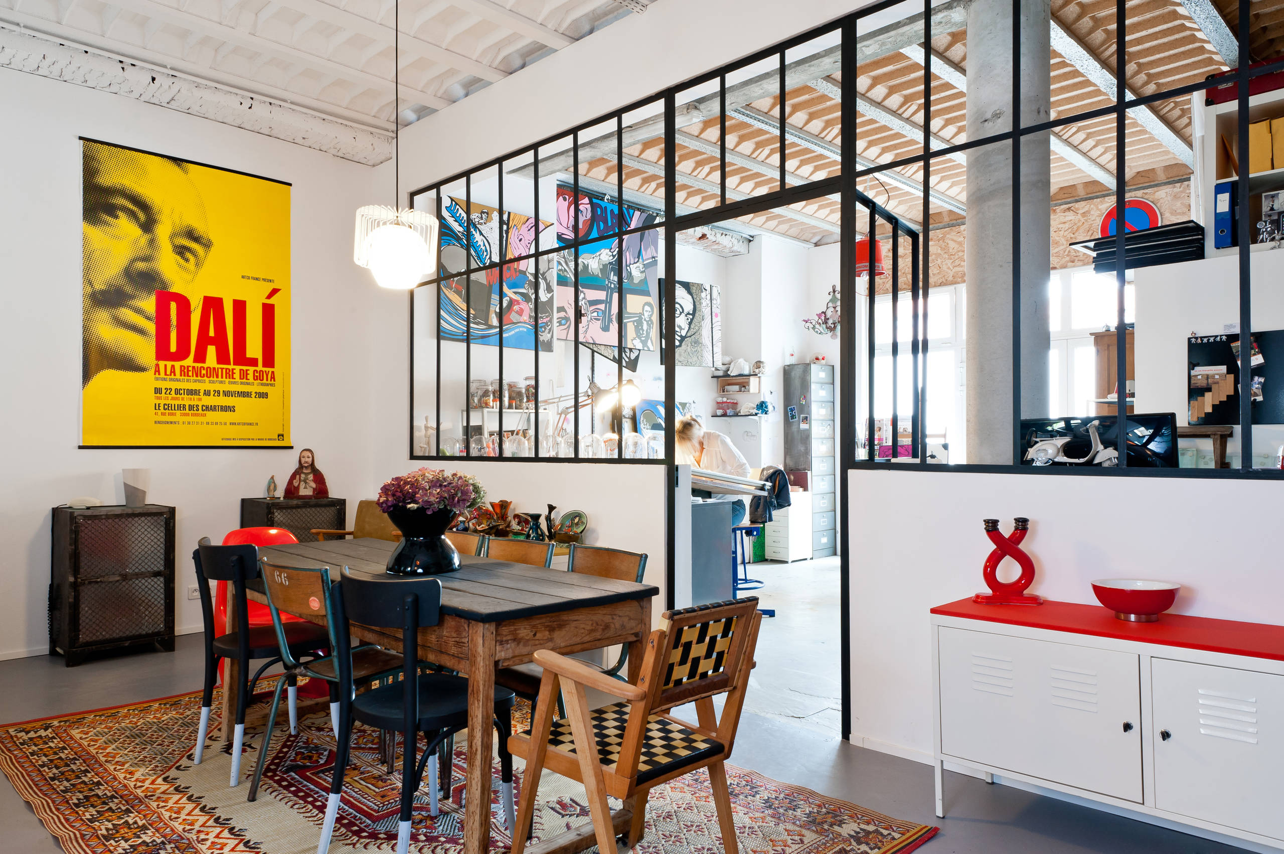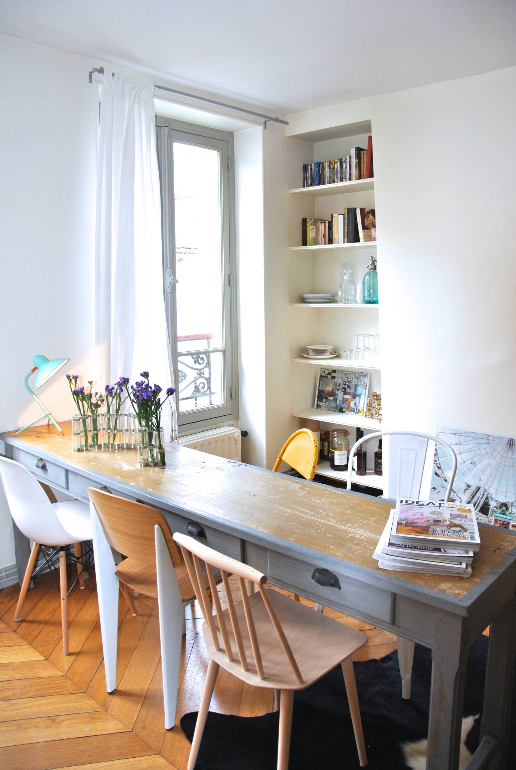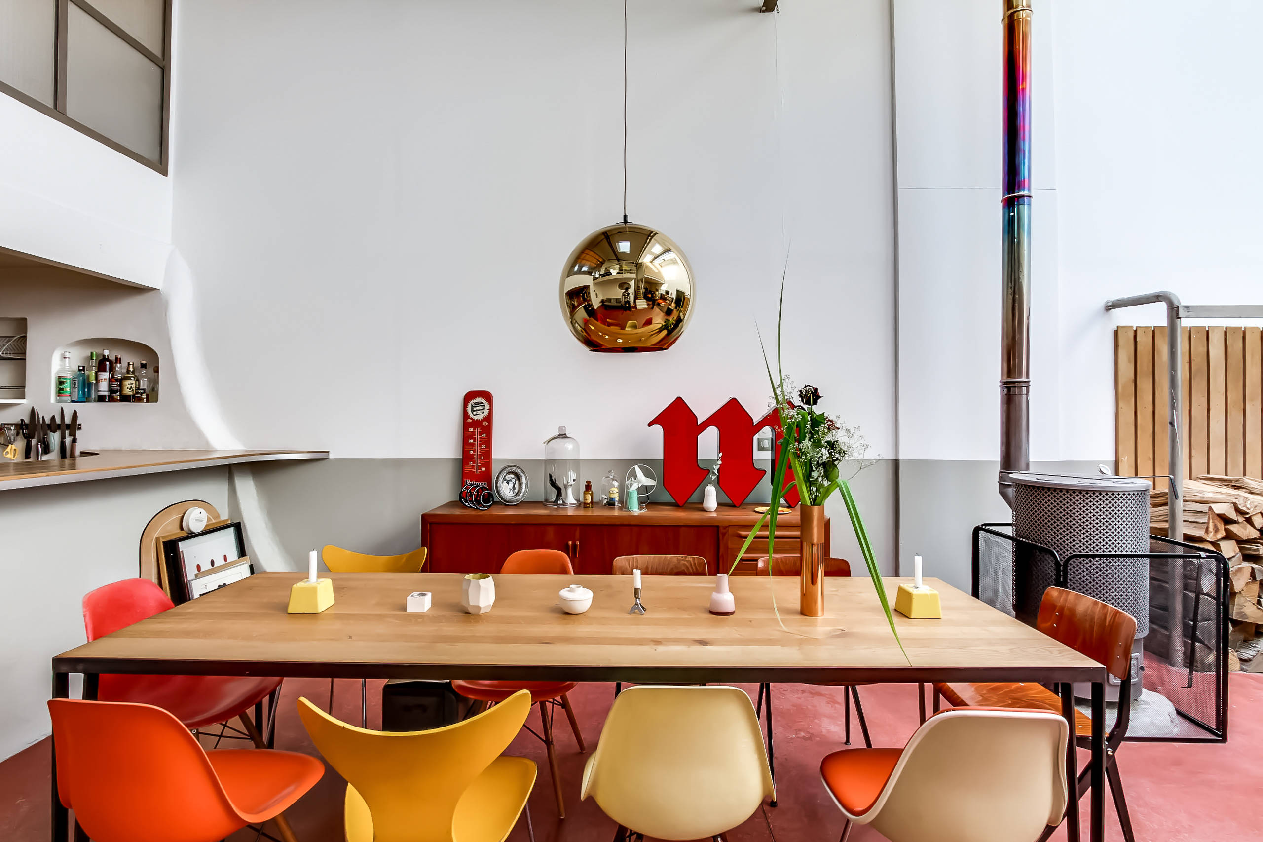 Dans ce joli loft parisien, on a choisi de souligner l’esprit vintage du lieu avec de jolies chaises dépareillées. Le fil conducteur ? Un même mode de fabrication puisque ces assises sont toutes en fibre de verre moulée. Non conformiste à souhait !