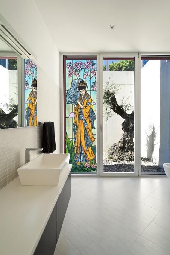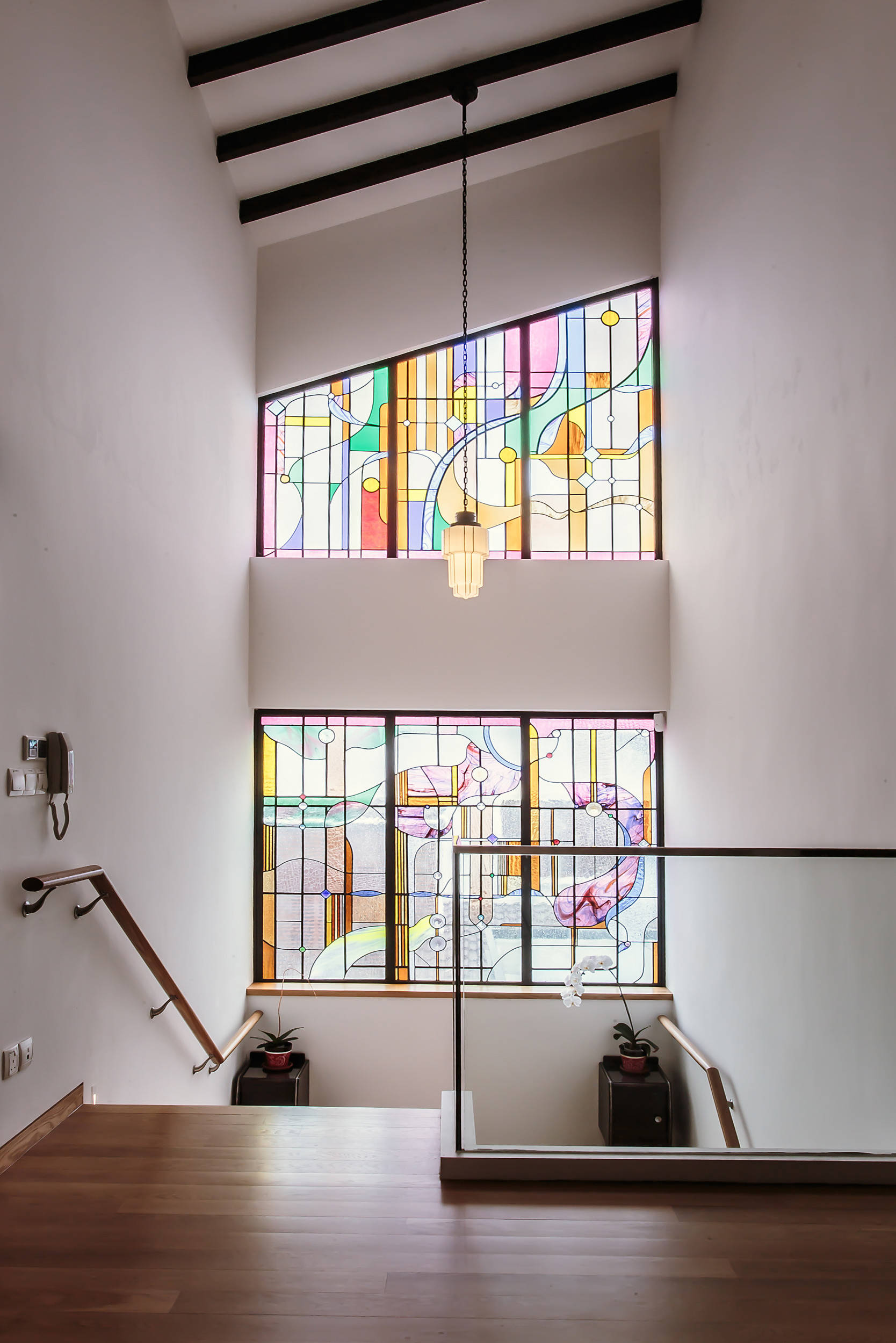 Sur deux hauteurs et en six panneaux, ce vitrail a fière allure dans cet escalier d’une demeure de Singapour. Un esprit cathédrale qui permet ici de laisser passer la lumière tout en s’isolant des regards extérieurs.