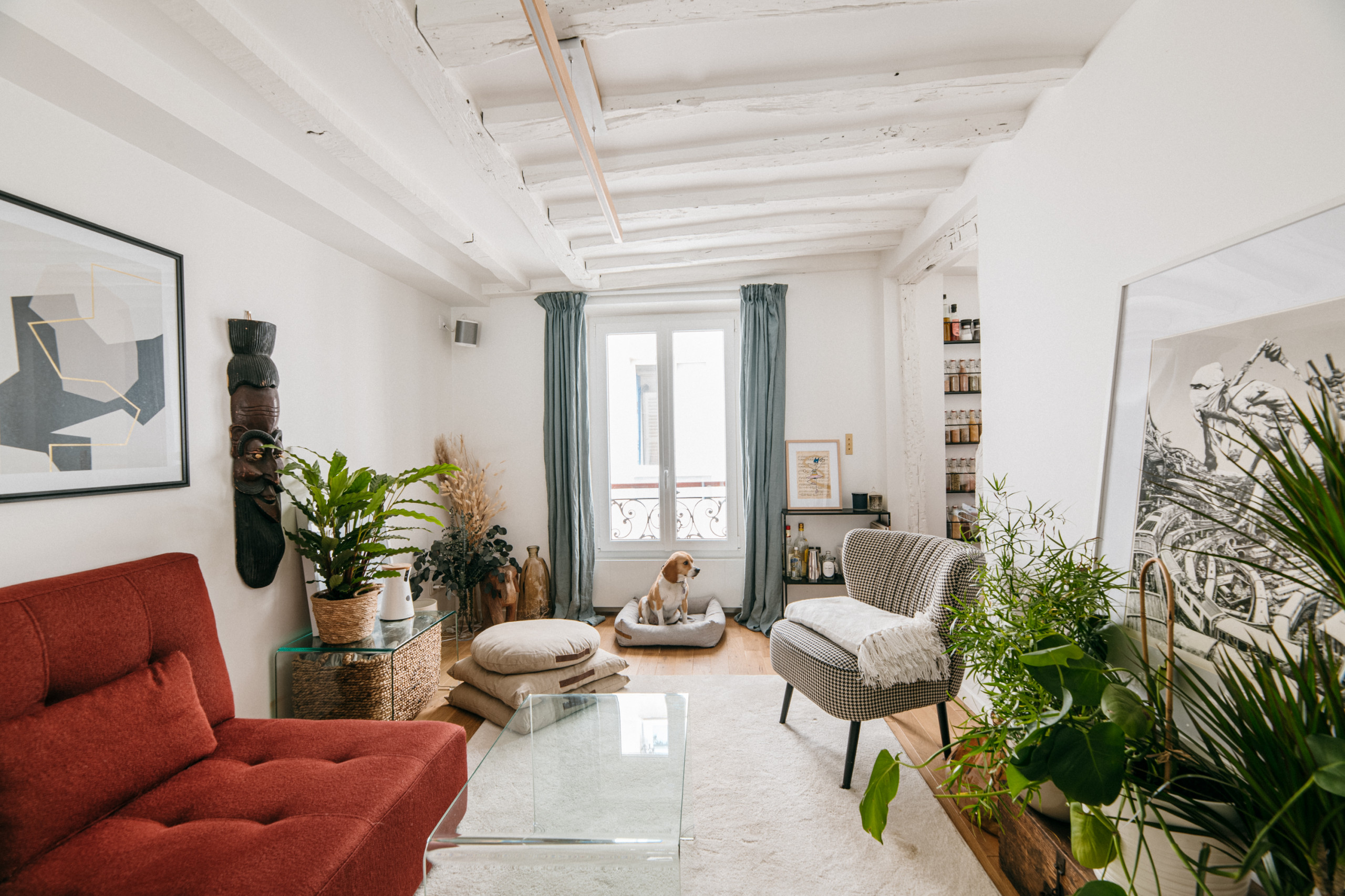 De manière générale, n’ayons pas peur du mix & match qui aboutit souvent à des décorations personnelles et poétiques, comme dans ce projet de l’agence Kierszbaum Intérieurs. L’éclectisme et le maximalisme règnent dans cette pièce de vie riche en motifs variés et couleurs intense.