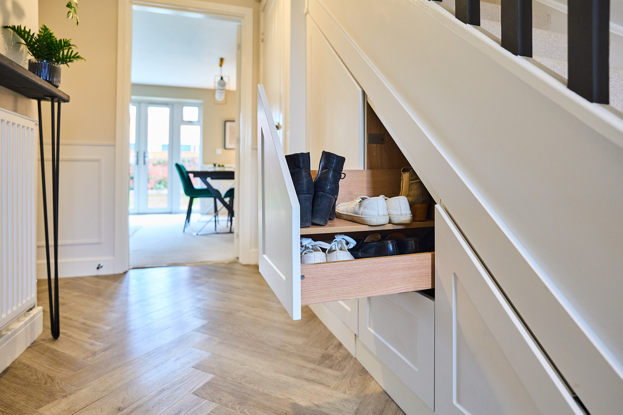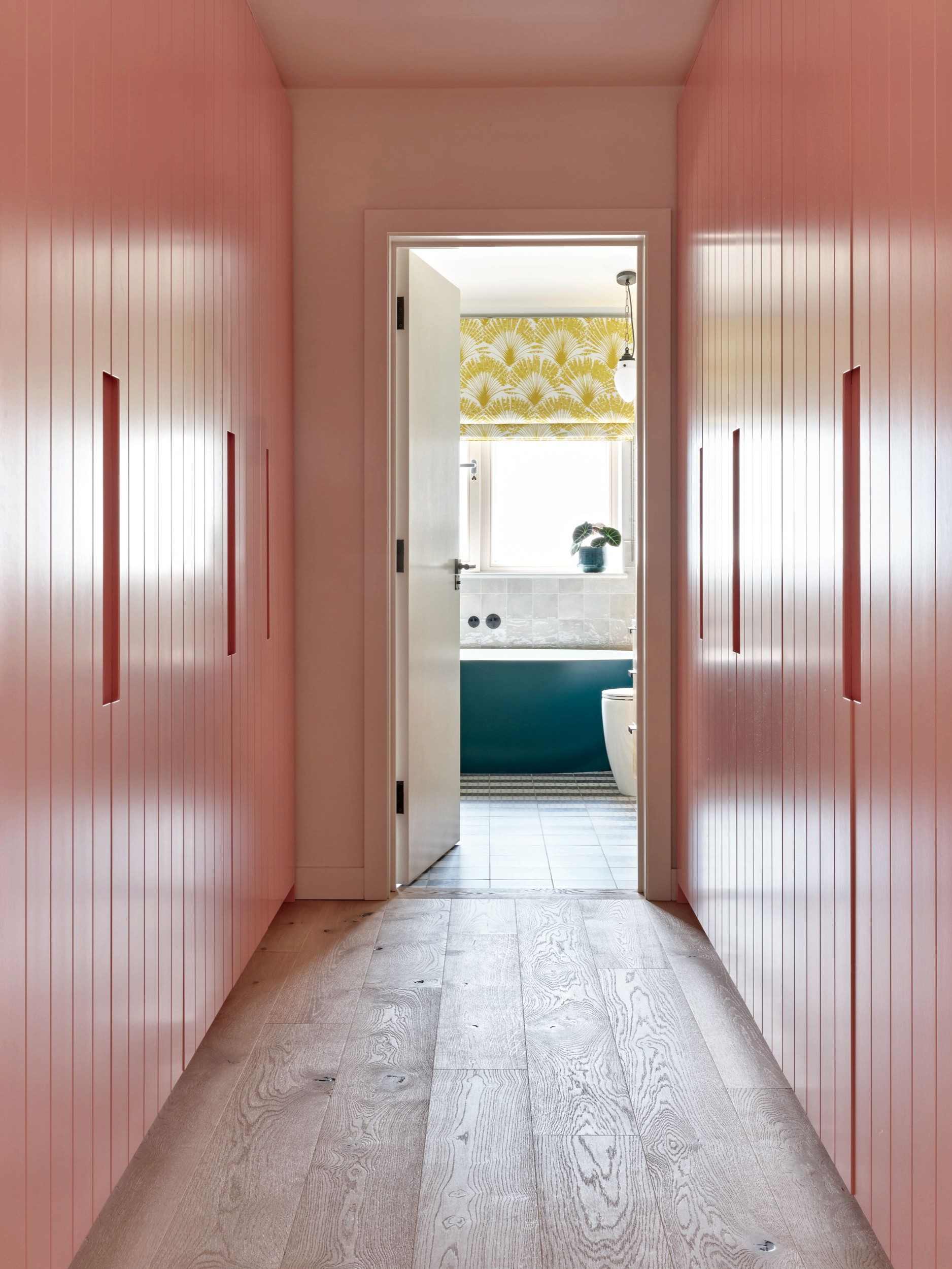 Dans de nombreuses maisons, les couloirs peuvent être étroits, ce qui met d’autant plus l’accent sur un encombrement minimal et des rangements discrets – comme les armoires toute hauteur sans poignées que l’on voit ici. Vous pouvez également envisager d’utiliser un espace vacant sous l’escalier, comme dans l’exemple précédent de rangement pour les chaussures.