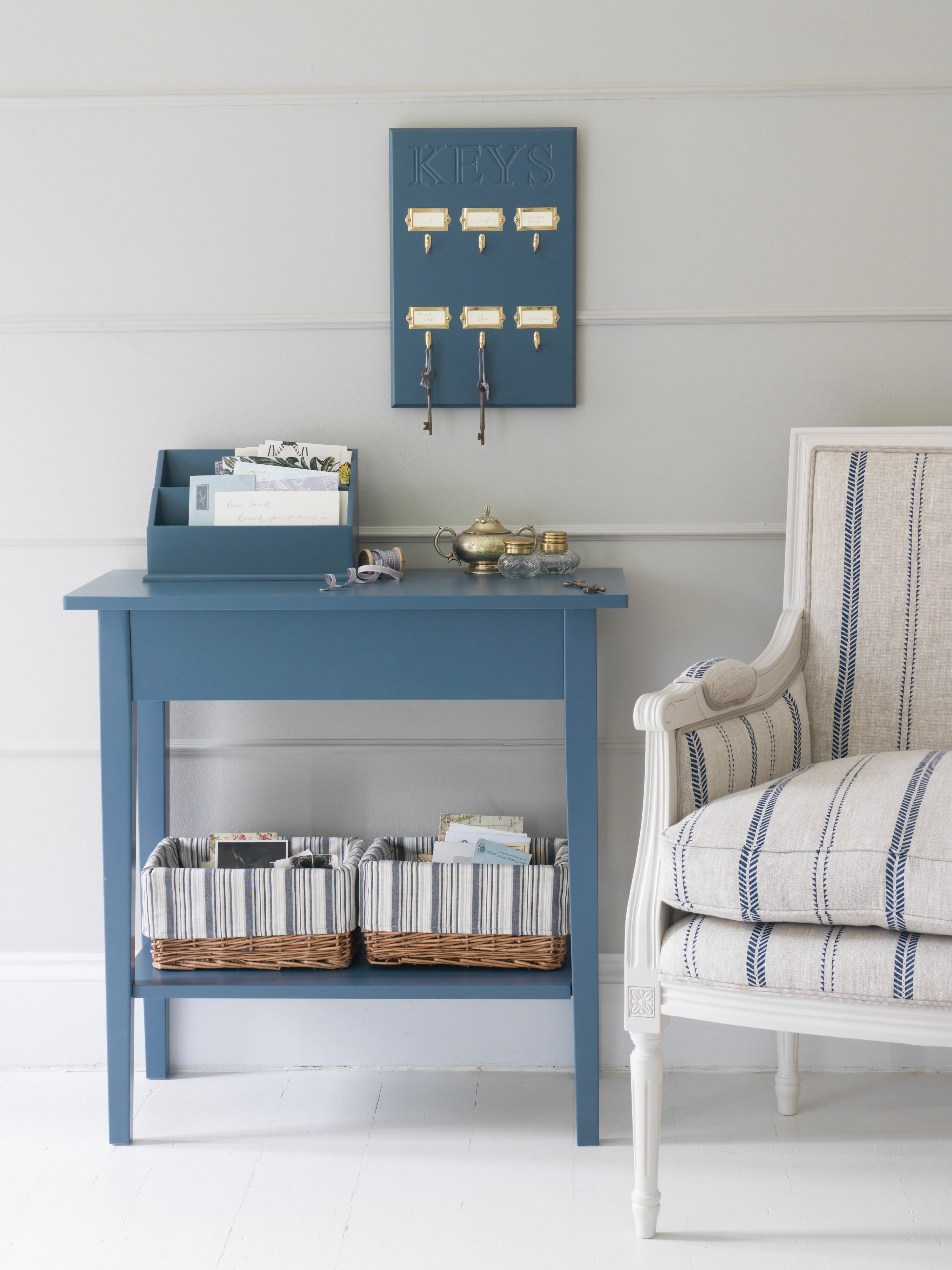 Joséphine Lecouflé-Vinet suggère de créer un espace réservé aux clés et aux sacs, afin qu’ils soient toujours là où on les attend et faciles à trouver. Une console d’entrée est une solution simple et adaptable qui peut se révéler utile à cette fin, avec un petit plateau ou une boîte sur le dessus où les clés sont déposées en toute sécurité. Un meuble étroit et non encombrant doté d’un tiroir ou d’un espace pour les boîtes de rangement peut également faire l’affaire si vous préférez ranger vos affaires.