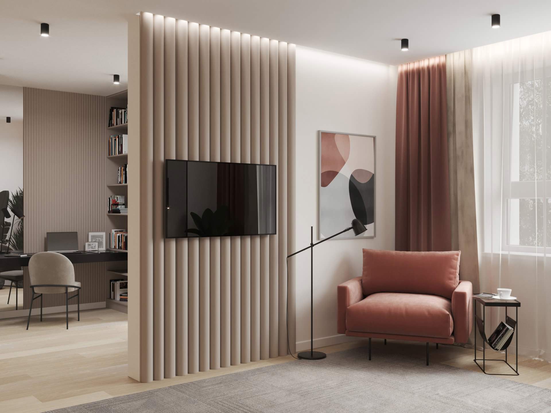Un espace discret dans la chambre, conçu pour lire un journal, naviguer sur Internet ou écouter la radio ou un podcast – comme ce siège de fenêtre – est un détail qui peut être particulièrement utile dans une maison multigénérationnelle ou partagée, où il peut souligner l’indépendance d’une personne et lui procurer de l’intimité.