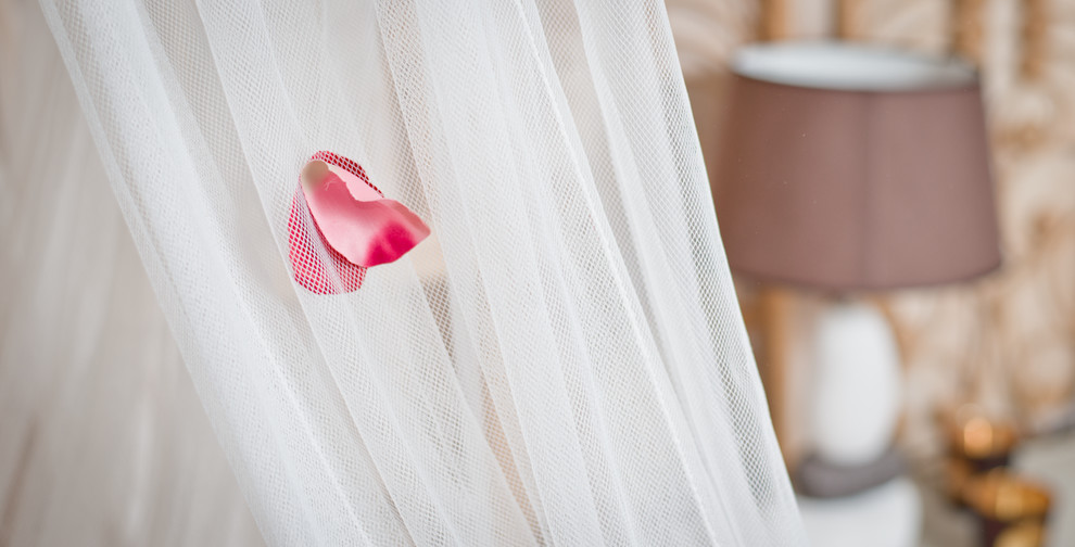Le reportage réalisé dans cette maison si joliment décorée aurait pu ne contenir que des photographies descriptives des pièces, chambres, cuisine et salle de bains. Ce serait sans compter sur la petite touche personnelle qui fait toute la différence. Un voile de tulle tombe sur la tête de lit, un pétale est pris dans ses mailles. Est-ce volontaire, est-ce un accident ? En tous les cas, parmi toutes les photographies remises aux propriétaires des lieux, celle-ci a tout de suite fait partie de leurs préférées. La lampe de chevet à peine visible dans l’arrière-plan situe la scène, tandis que toute l’atmosphère de la pièce semble profiter de la délicatesse de ce pétale. Notez la netteté des moirés sur les pétales et sur la trame du textile. C’est ce contraste avec le fond qui assure toute la force de cette image.