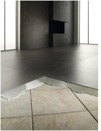 Astuce : Si comme ici, votre projet est de recouvrir un carrelage existant sans ôter l’ancien, le Kerlite limite l’épaisseur de l’ouvrage final. Ces plaques de grès cérame pleine masse de 3,5 mm d’épaisseur seulement sont idéales en rénovation.