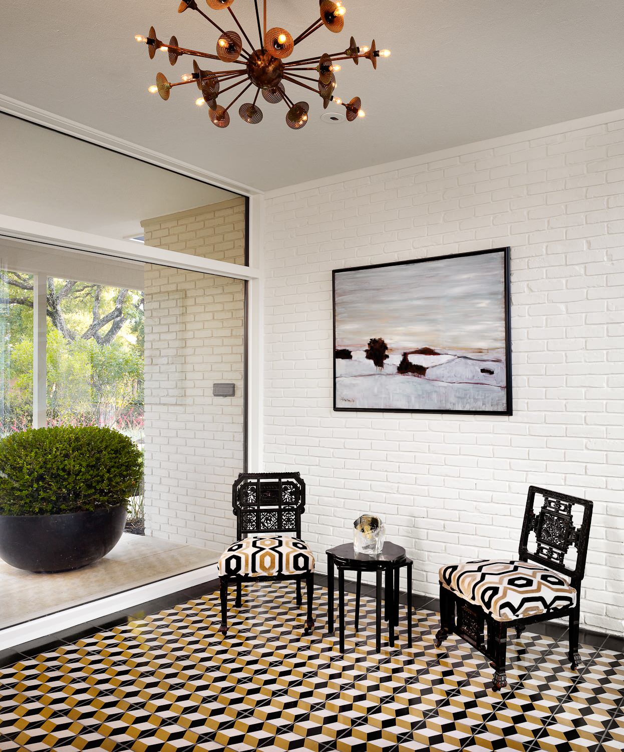 Le motif géométrique ci-dessus, à l’effet 3D, est l’un des chouchous car il combine carreaux de ciment et l’attirance actuelle pour le géométrique. L’indémodable noir et blanc reste aussi une valeur sûre. Dans les couloirs, posez les carreaux en diagonale pour un effet d’espace. Dans une grande pièce tentez la très chic pose tapis comme ci-dessus.