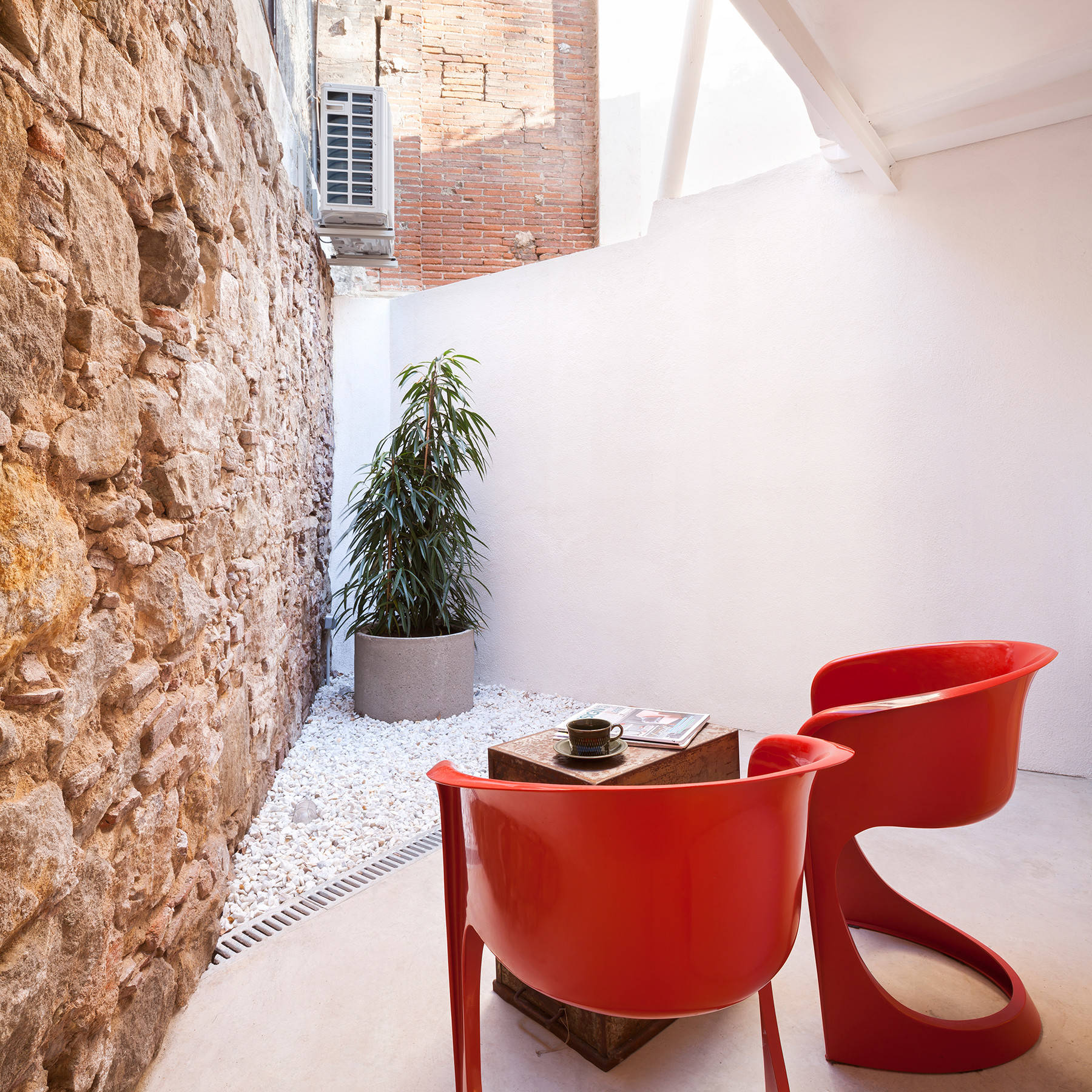 Le plastique s’invite de plus en plus sur nos terrasses. Il permet d’obtenir une multitude de formes et de couleurs pour ajouter une touche de fun à votre terrasse. L’absence complète d’entretien et sa facilité de nettoyage en font un allié de choix pour votre mobilier. L’échelle de prix est très large : il dépend du design, de l’épaisseur du plastique et de la finition.