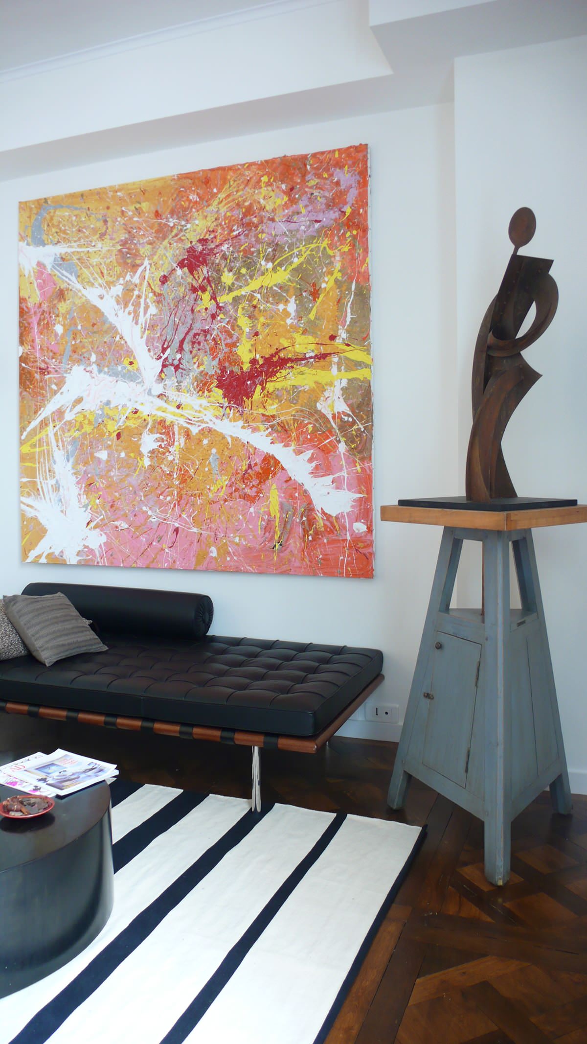 Un mur blanc n’est pas synonyme d’ennui. Voyez-le plutôt comme une base neutre pour apporter de la couleur d’une autre manière, comme avec un tableau abstrait et coloré.