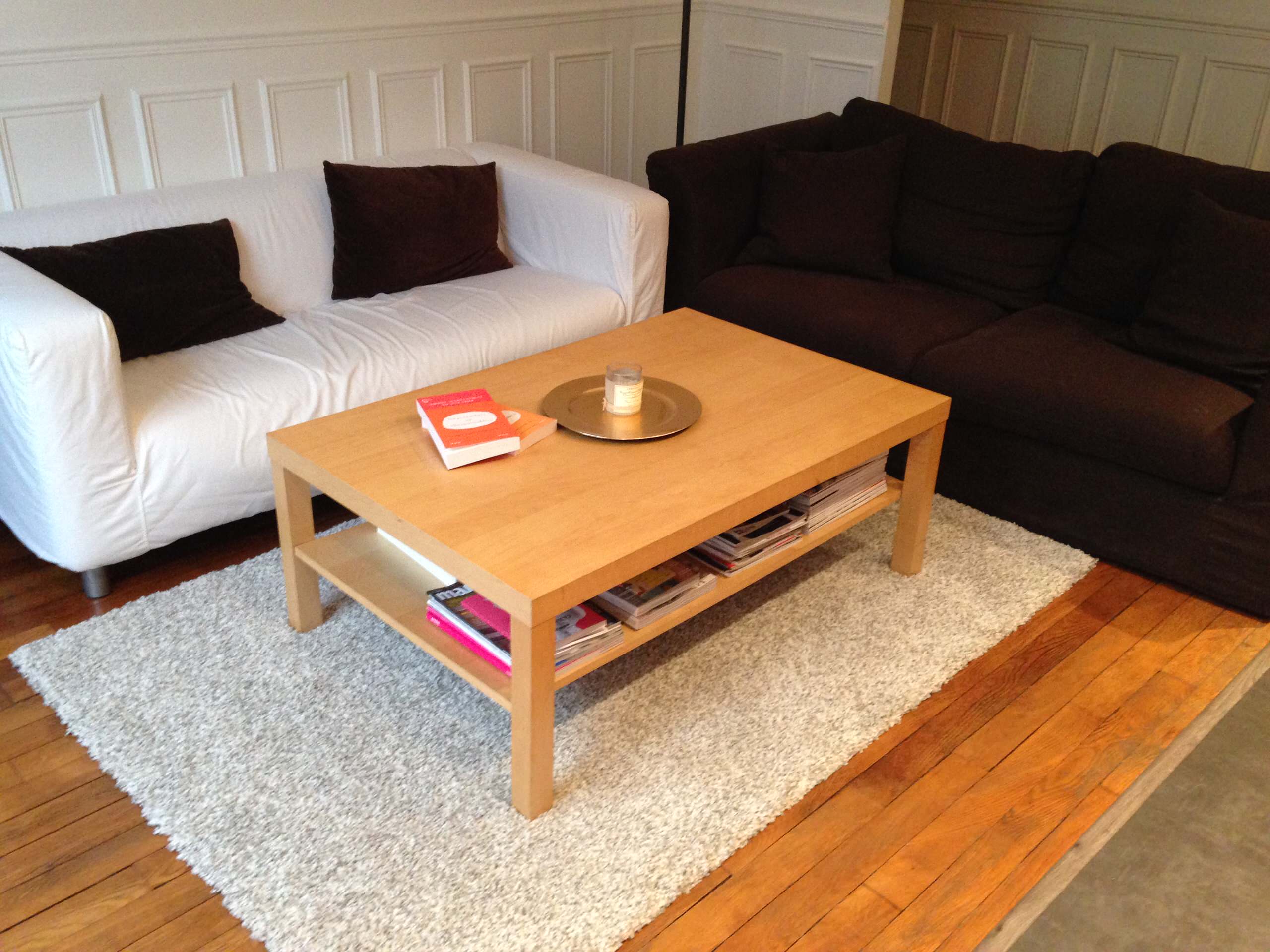 Pour apporter du cachet à un mur blanc, vous pouvez travailler son soubassement avec des moulures. Comme dans ce salon, tout est blanc, mais les moulures apportent du relief aux murs. Il existe des moulures synthétiques qui sont très faciles à couper et à coller. Une fois peintes, on ne voit pas la différence avec des moulures anciennes.