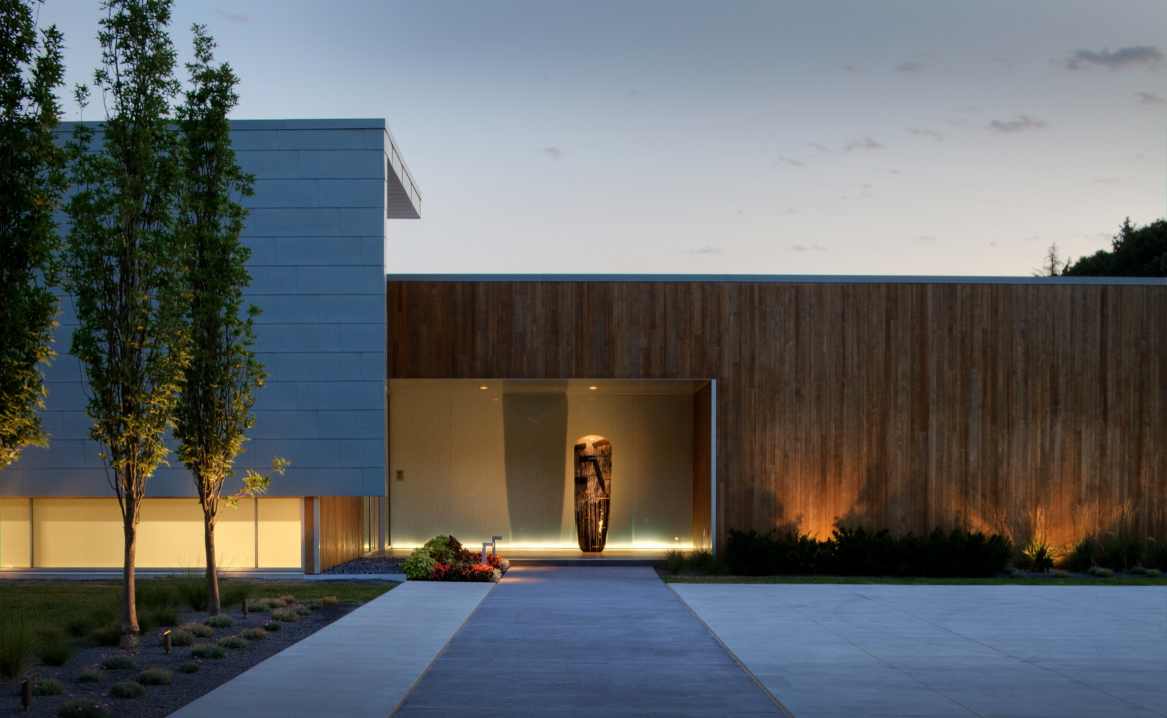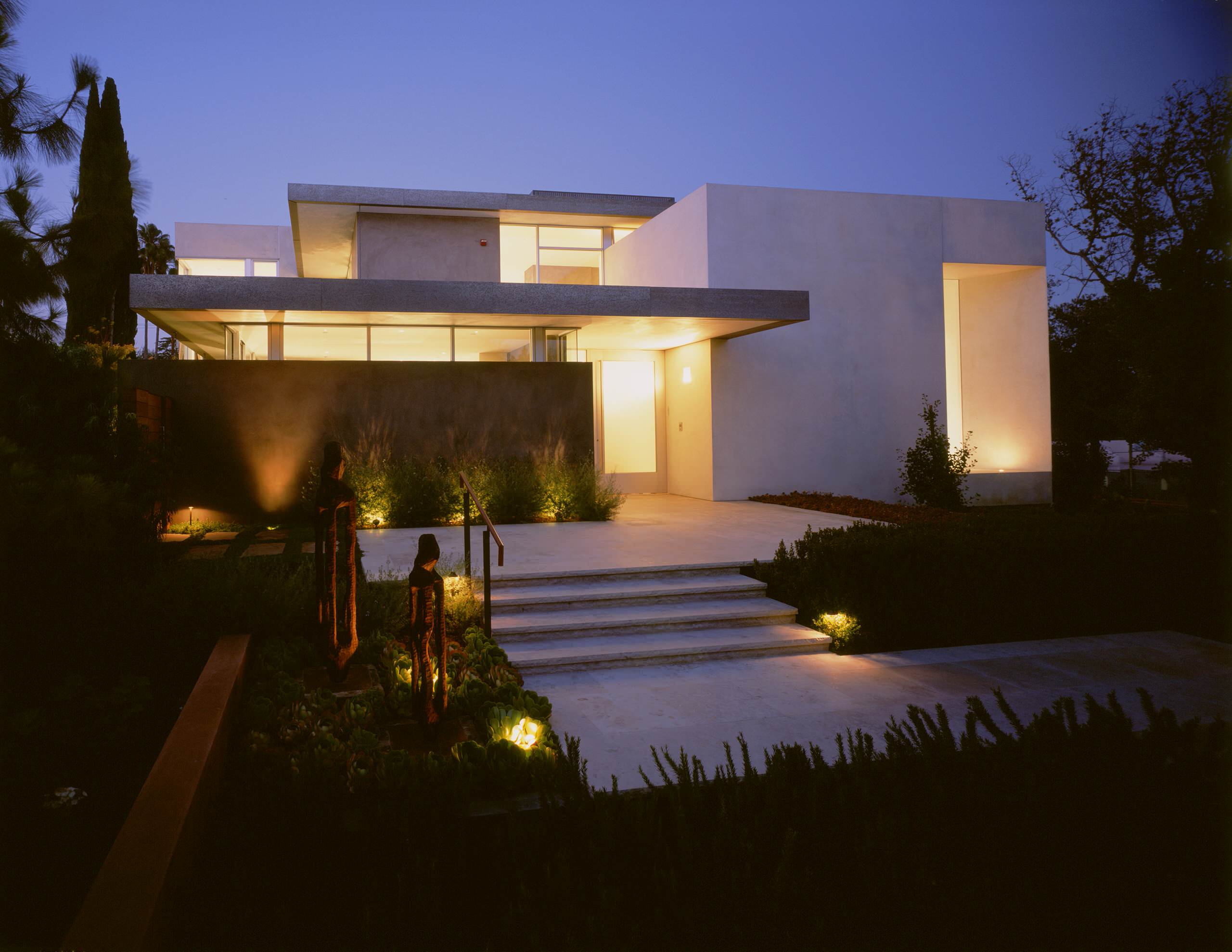 De petits lampadaires discrets ajoutent une source lumineuse exactement là où on en a besoin pour rejoindre l’entrée de la maison en toute sécurité. L’œuvre d’art exposée dans l’entrée est éclairée à la fois en plongée et en contre-plongée pour un effet encore plus impressionnant. Les spots permettent d’éclairer l’objet en lui-même et de projeter son ombre sur le mur derrière.
