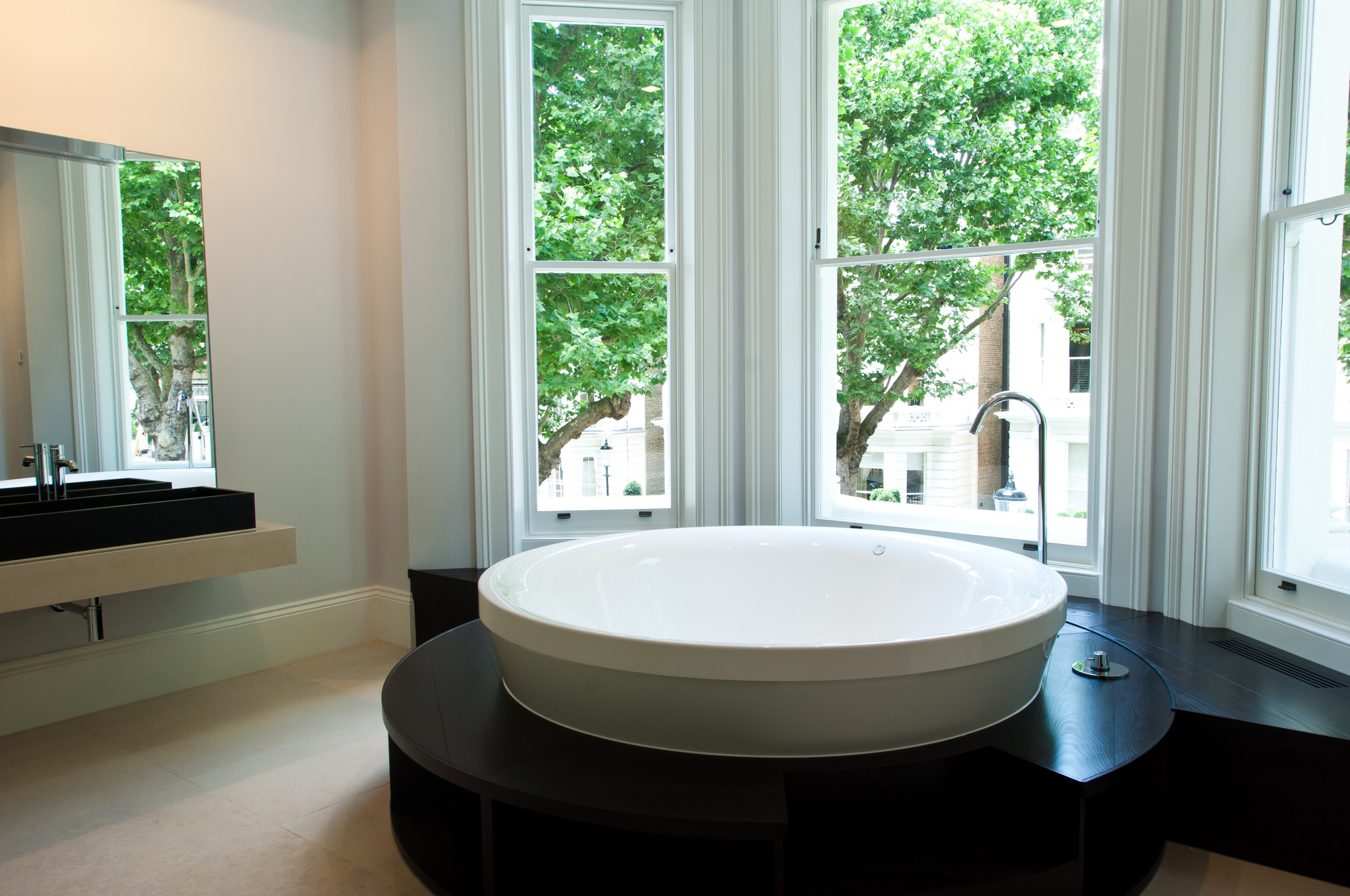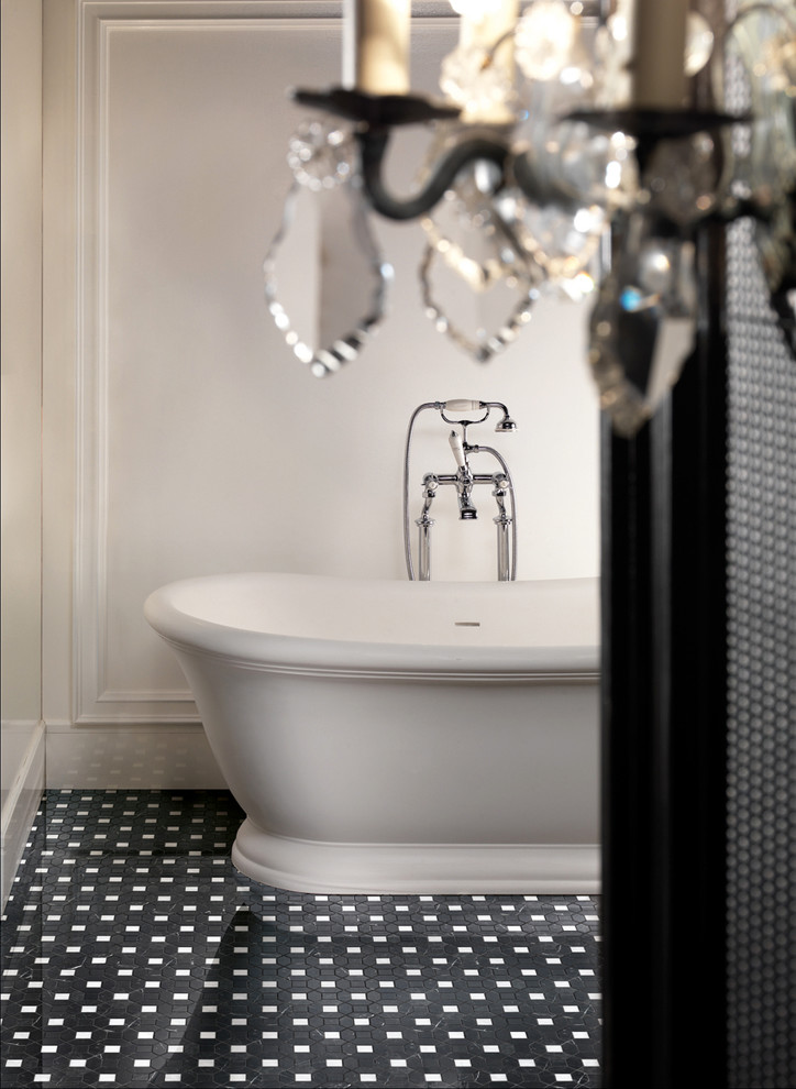 Voici la salle de bains de mes rêves dans la maison de mes rêves : une baignoire simple et élégante qui s’intègre harmonieusement avec de magnifiques fenêtres à guillotine. C’est le job de votre designer de comprendre l’esprit de votre maison et de faire en sorte que tout se marie. Chaque pièce a un rôle particulier, mais toutes les pièces se déclinent autour d’un même style.