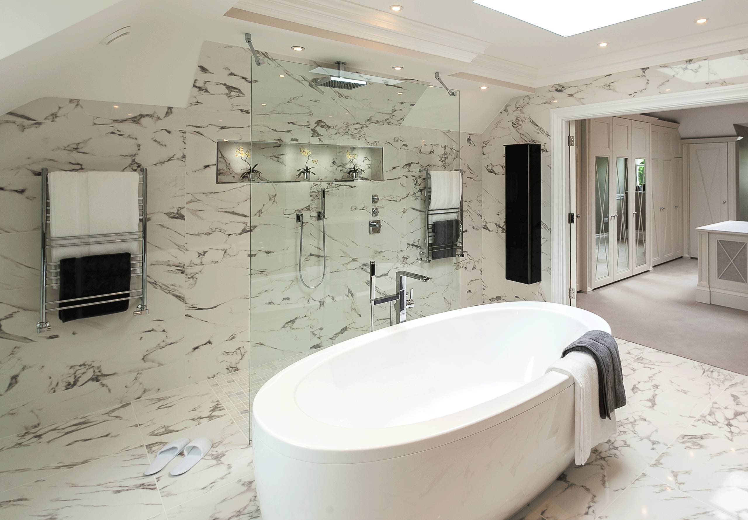 Partir à la chasse aux idées, matériaux ou accessoires, est toujours un moment sympa. Alors profitez-en ! Votre architecte d’intérieur pourra vous aider à dénicher de jolies pierres ou céramique qui donneront de l’harmonie à votre salle de bains. Pour ma part, j’aime utiliser la même pierre pour les murs et le sol. Cela donne un effet cocon très sympa. Et c’est très relaxant de suivre les veines du carrelage qui vous entourent.