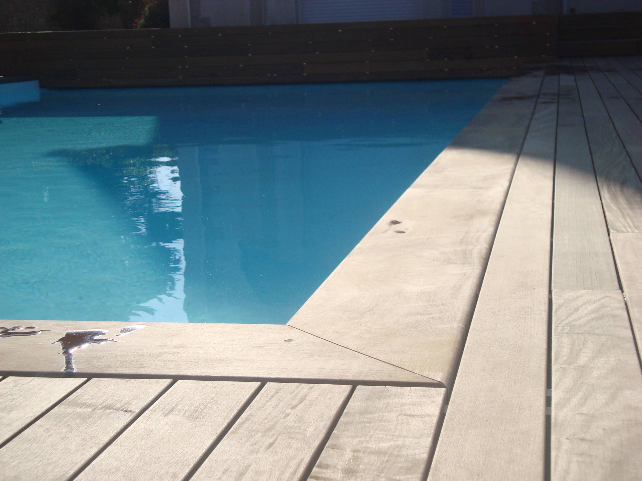 Finition de la terrasse ci-dessus : ipé sans traitement, deux ans après la pose