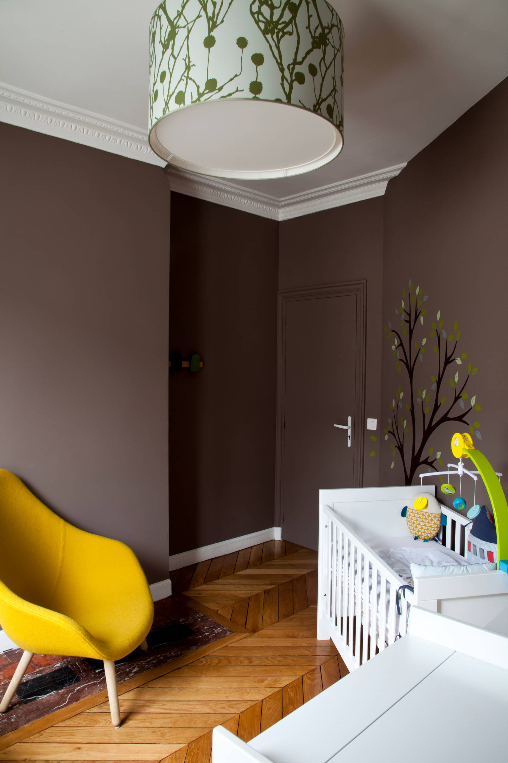 Dans les espaces dédiées aux enfants, le jaune moutarde y rayonnera joyeusement, comme inspiré de leurs premiers coloriages : une feuille blanche + une maison + un soleil…